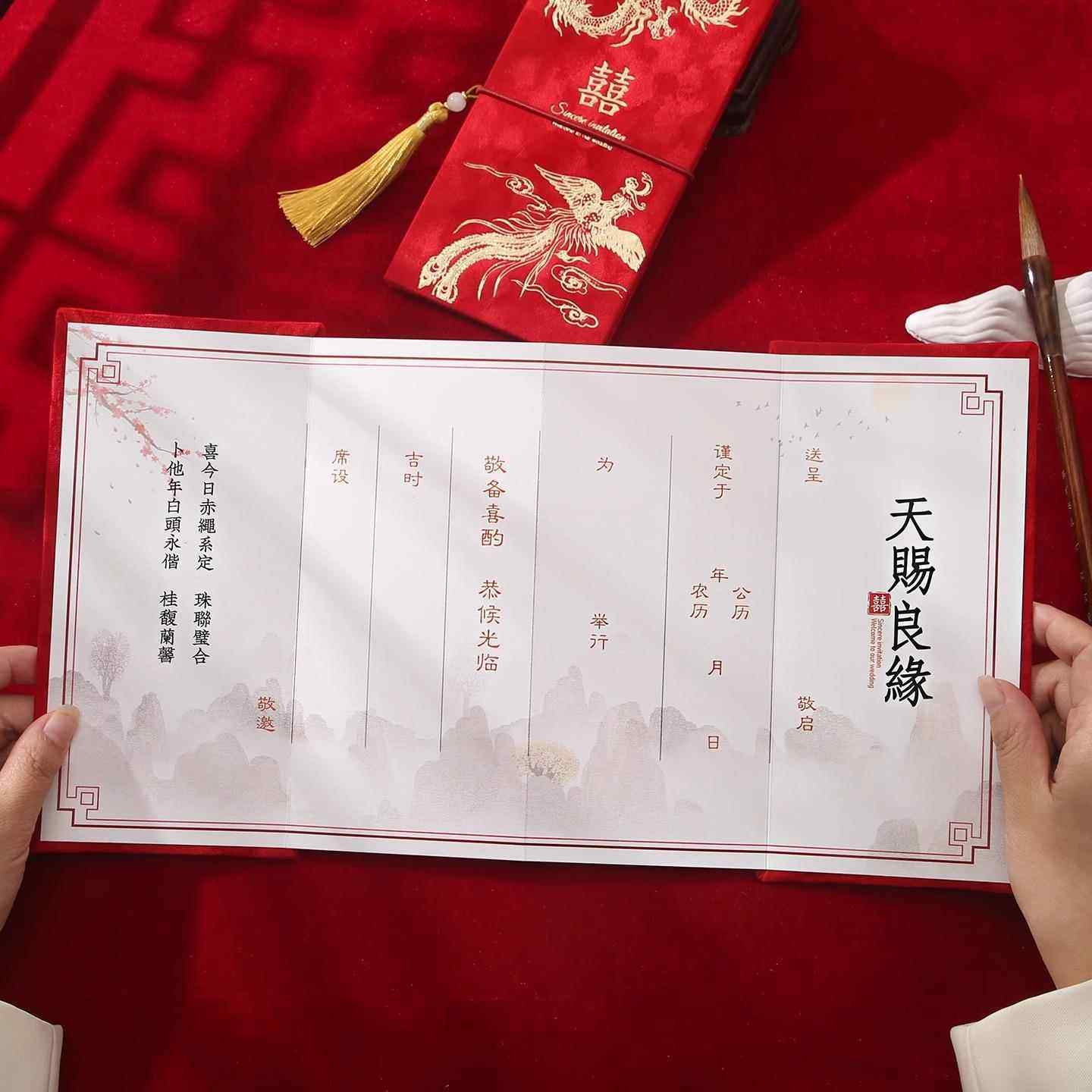 丝绒布结婚请柬高端婚礼请帖婚宴流苏中式喜帖高级感中国风邀请函