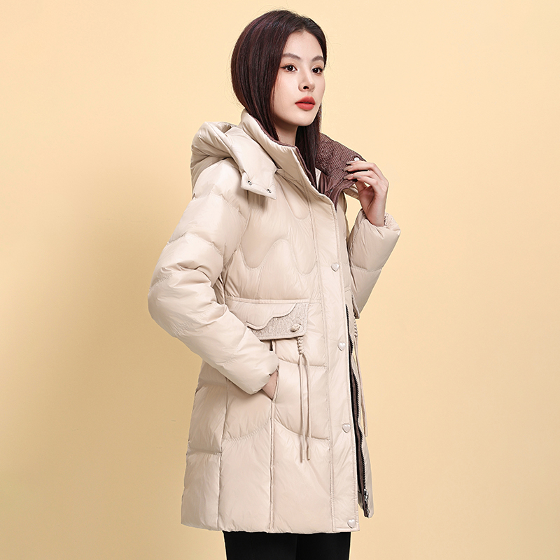 新款冬季羽绒服女装中长款外套白鸭绒保暖鸭绒袄子显瘦妈妈冬装潮