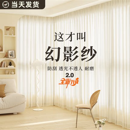 奶油幻影纱窗帘透光不透人纱帘客厅阳台防晒隔热薄纱轻奢飘窗防窥