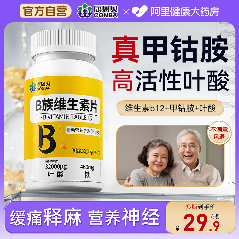 阿里健康大药房甲钴营养修复神经100片胺维生素b12叶酸康恩贝