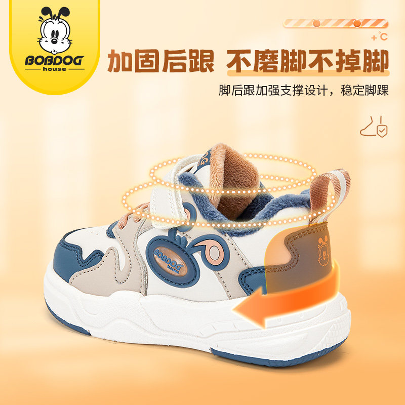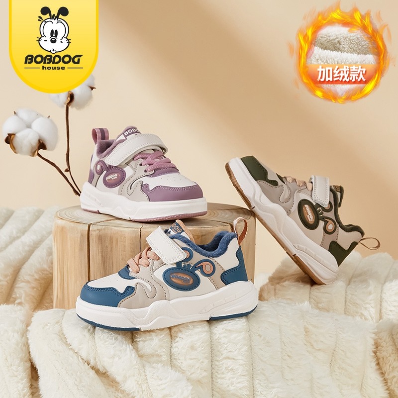 巴布豆儿童板鞋加绒加厚运动鞋魔术贴保暖鞋