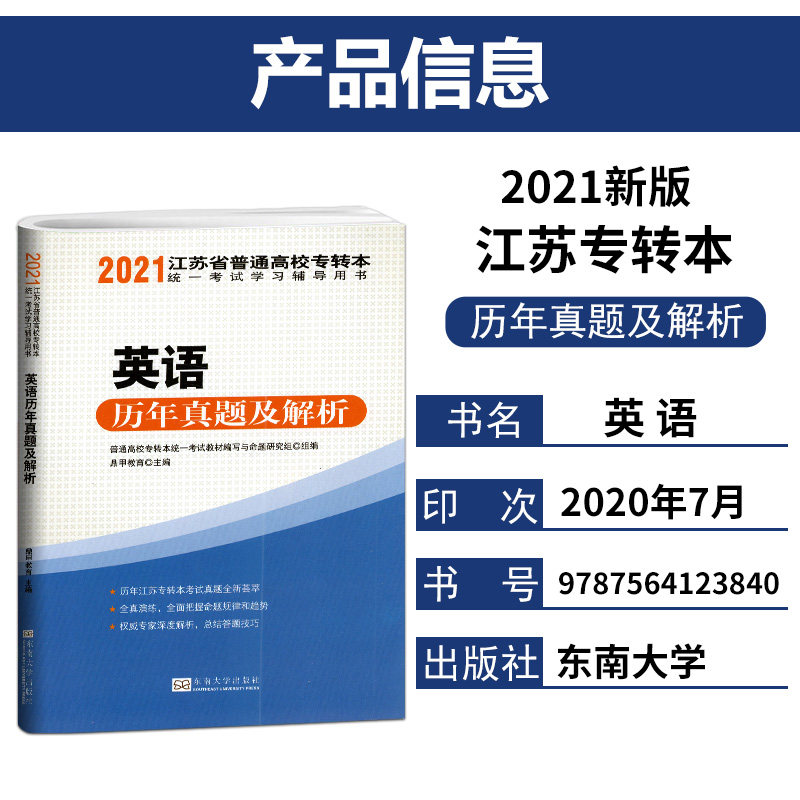 江苏省普通高校专转本 统一考试学习辅导用书 英语 历年真题及解析 东南大学出版社 含2011-2020年真题