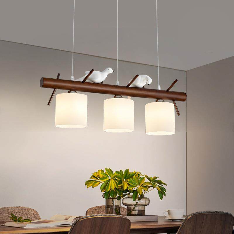新中式餐厅吊灯橡胶木三头led饭厅灯简约网红小鸟创意餐桌吧台灯