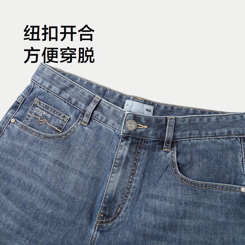 HLA/海澜之家山不在高宽松水洗牛仔裤25春夏季新款锥形九分裤子男