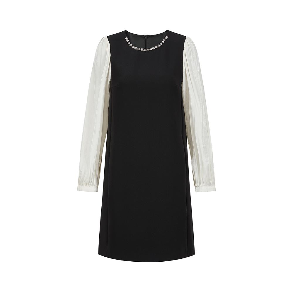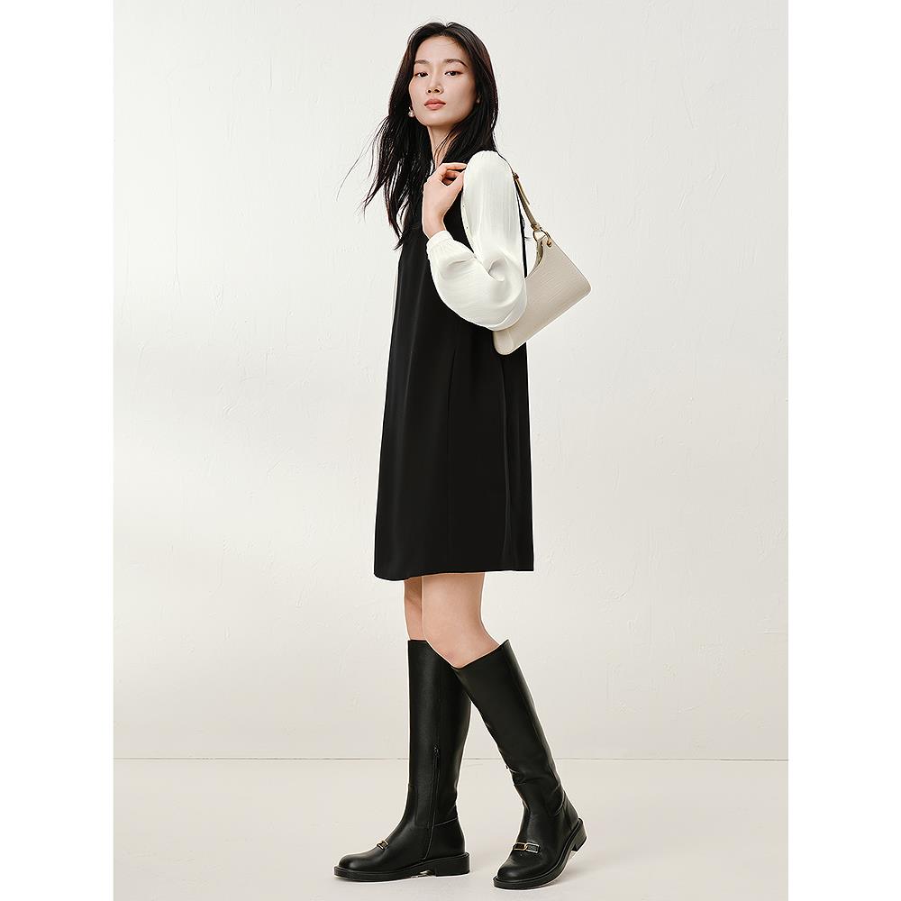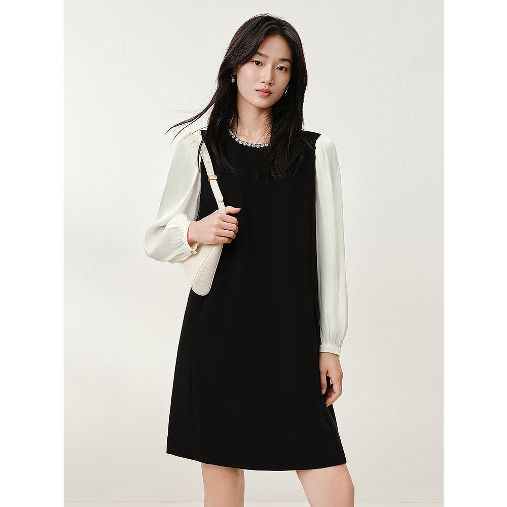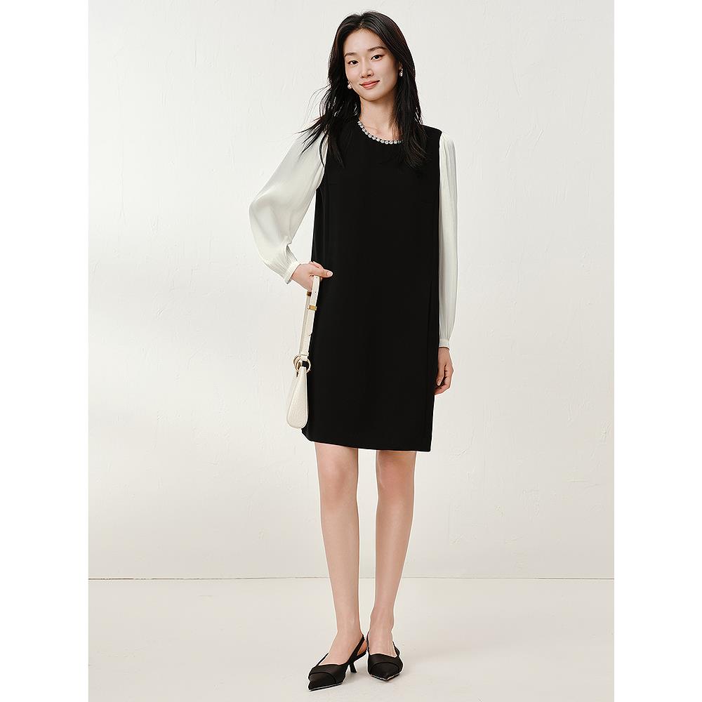 爵莱菲大码优雅千金风拼接连衣裙小黑裙女2025秋季新款胖mm