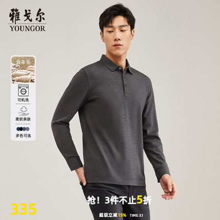 【可机洗羊毛混纺】雅戈尔男士长袖Polo衫秋冬季商务休闲翻领T恤