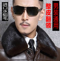 进口水貂毛领子方领男士真皮毛整皮翻领皮草大衣通用冬季保暖假领