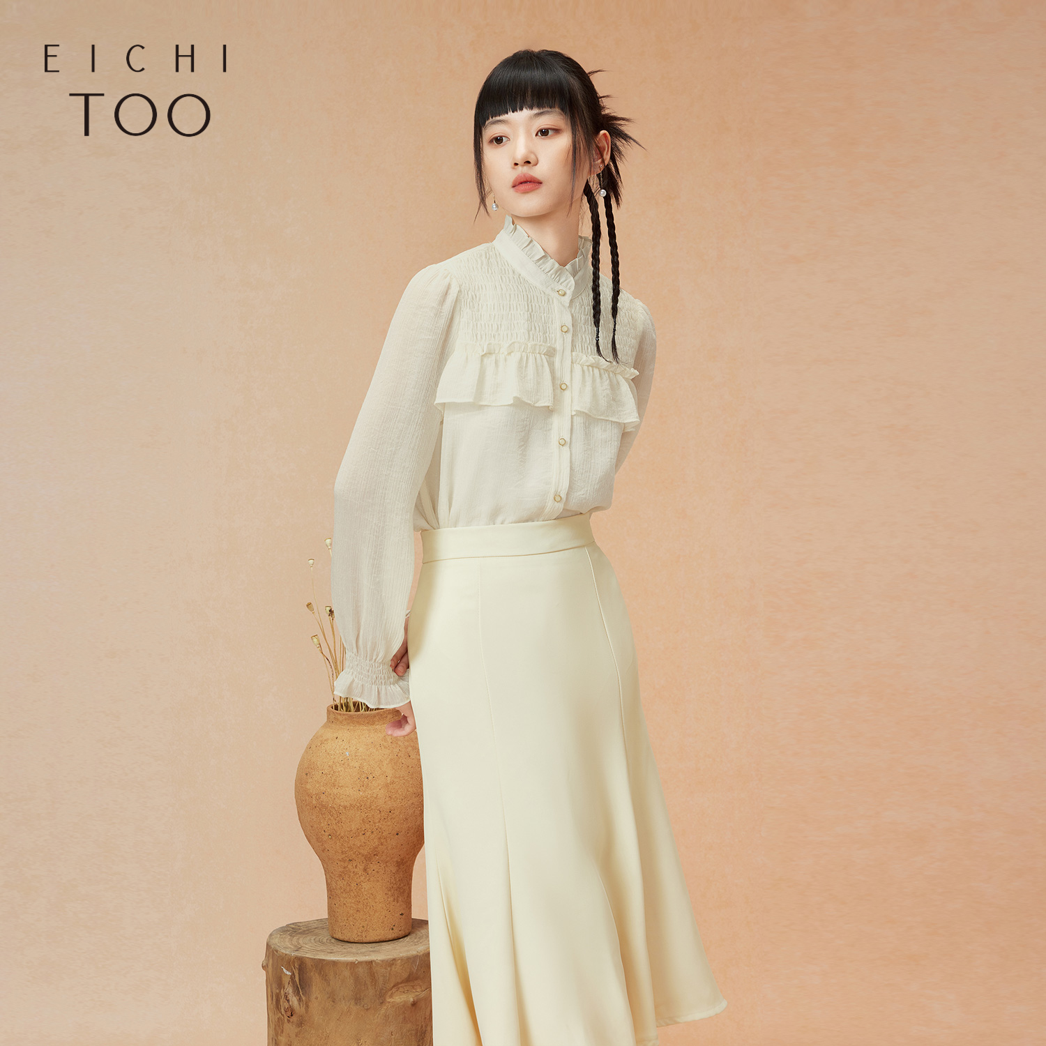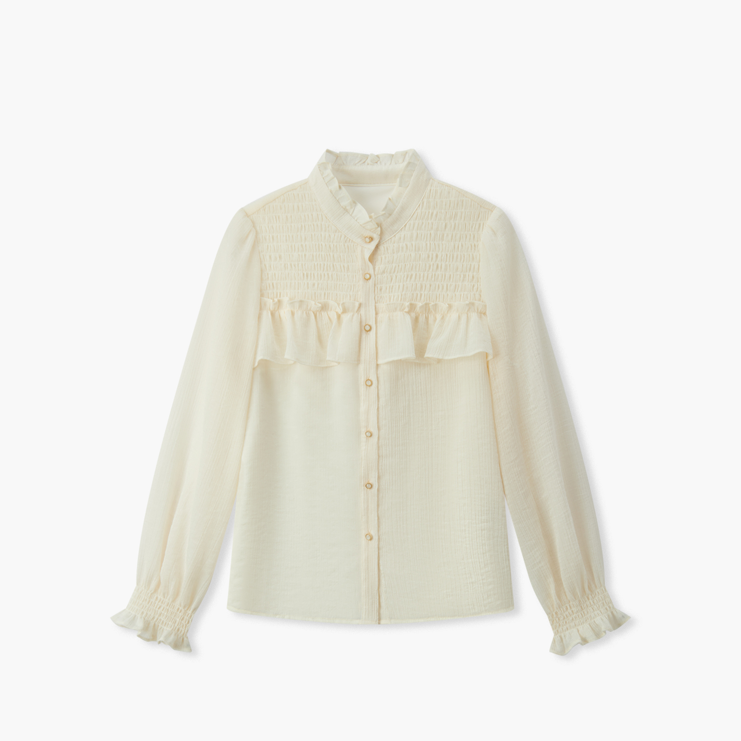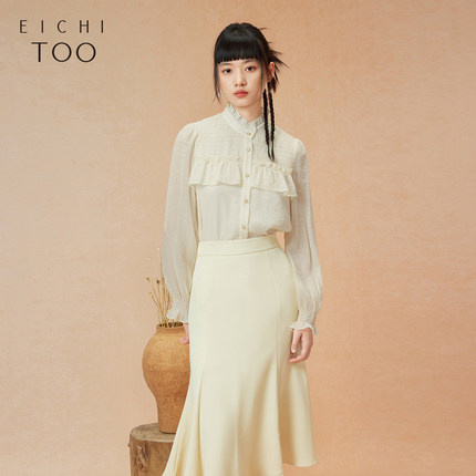 爱居兔法式木耳边衬衫女长袖春秋新款宽松显瘦淑女感雪纺衫