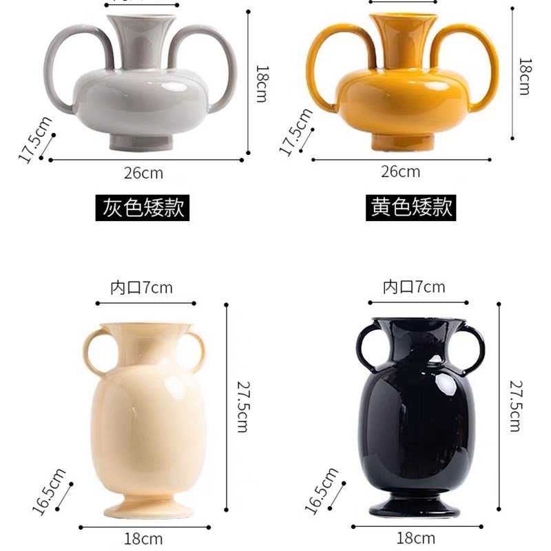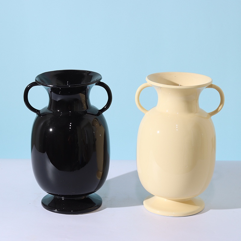 新中式双耳花瓶法式奶油风陶瓷花瓶家居摆件客厅玄关插花装饰摆件