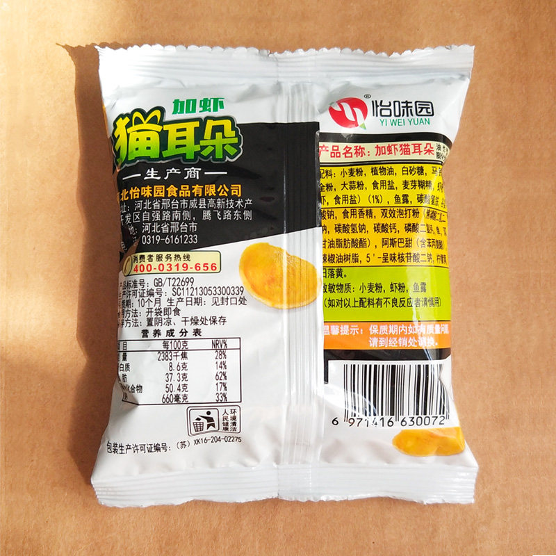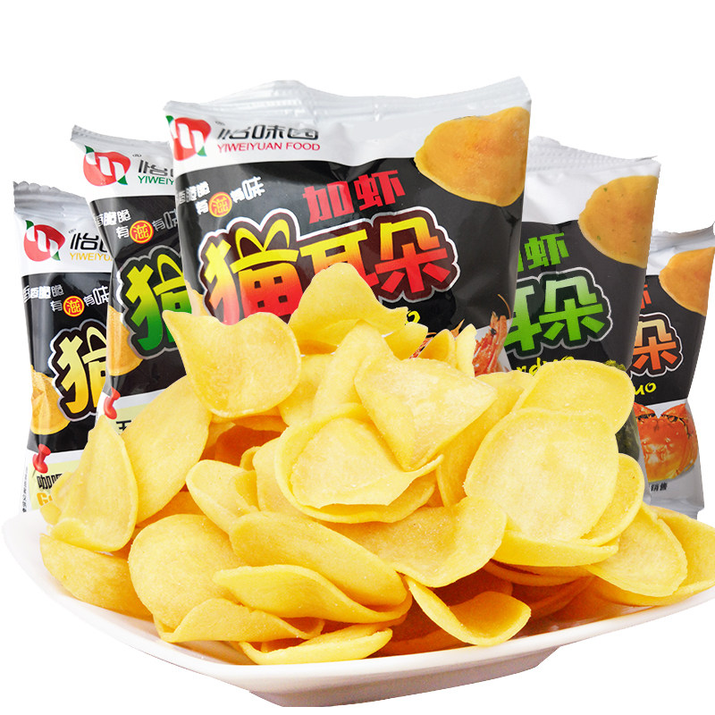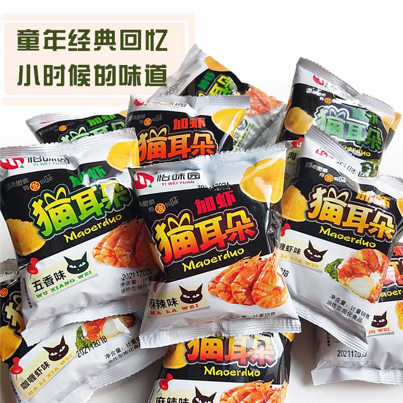 【怡味园】零食加虾猫耳朵40包网红食品童年味道河北特产蟹黄麻辣
