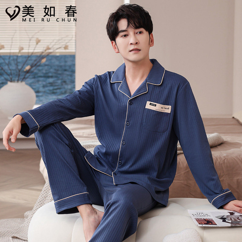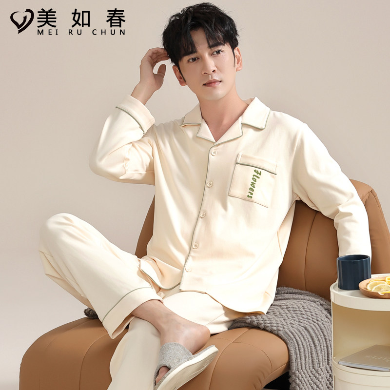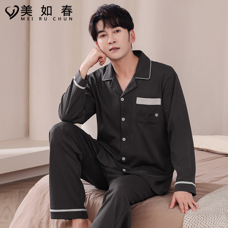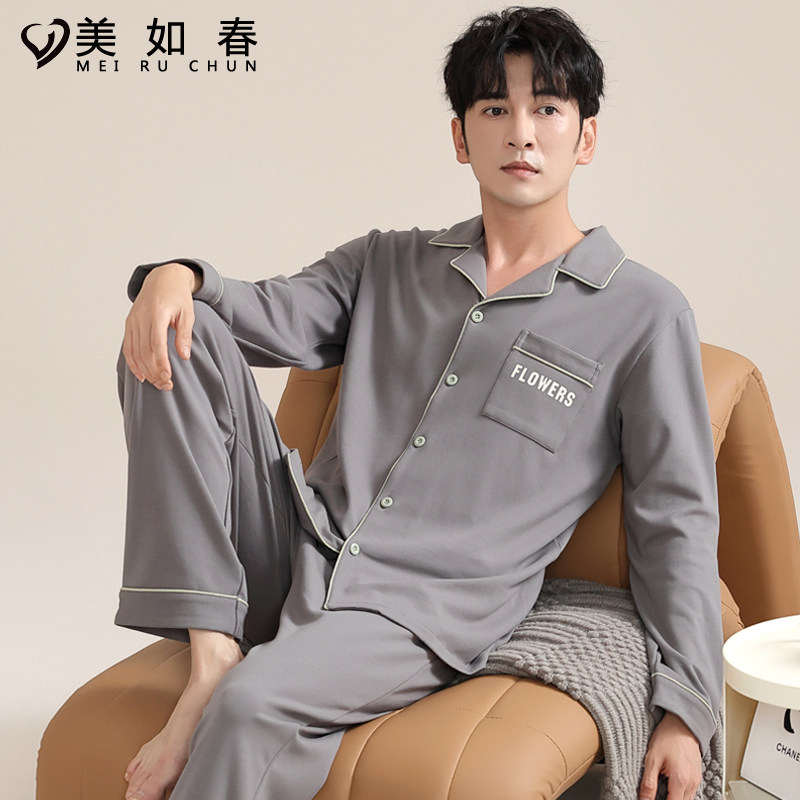 莱卡【高档面料】2025年睡衣男秋冬季纯棉长袖休闲家居服春款套装
