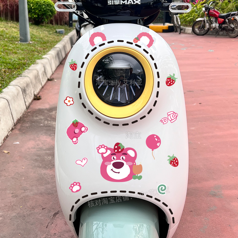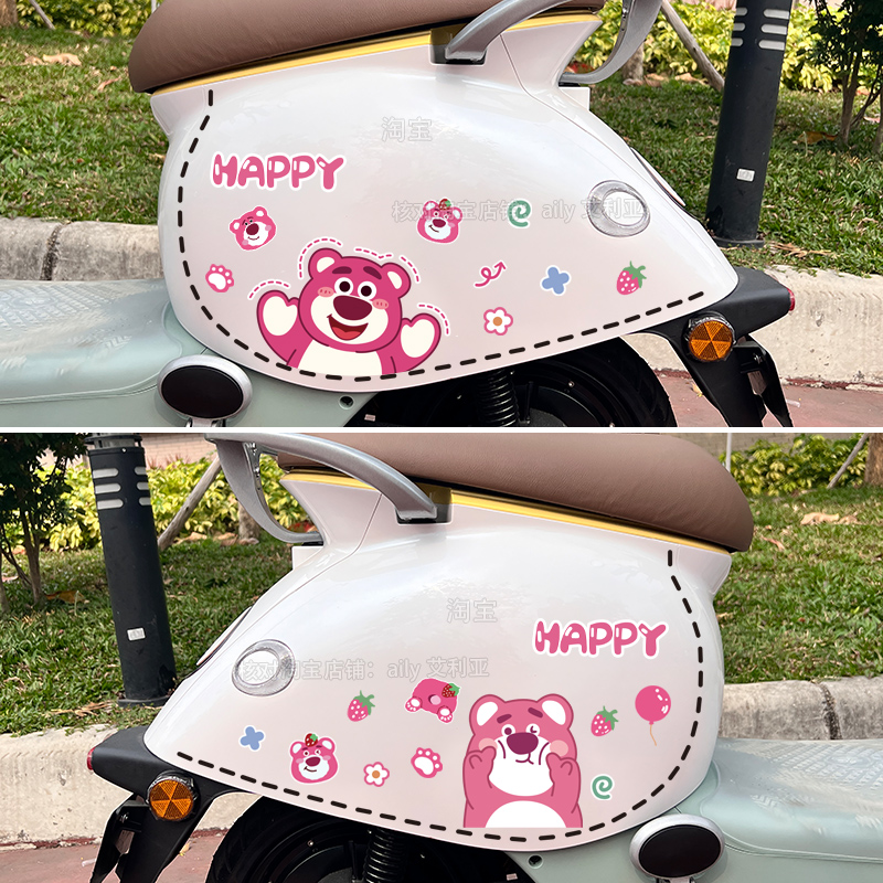 电动车贴纸可爱草莓熊迪士尼卡通装饰摩托车雅迪爱玛晴天防水无痕