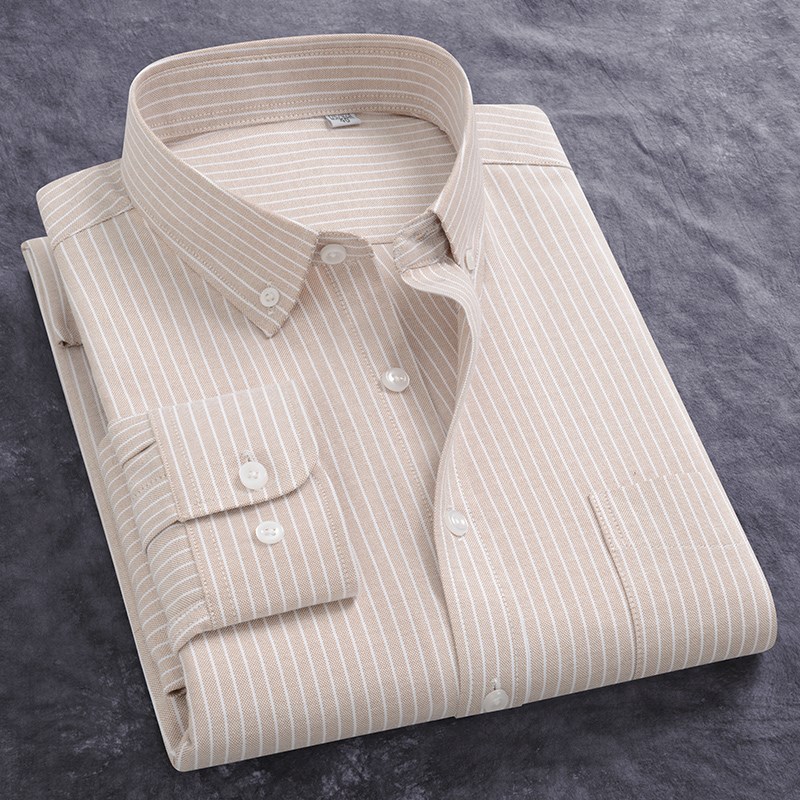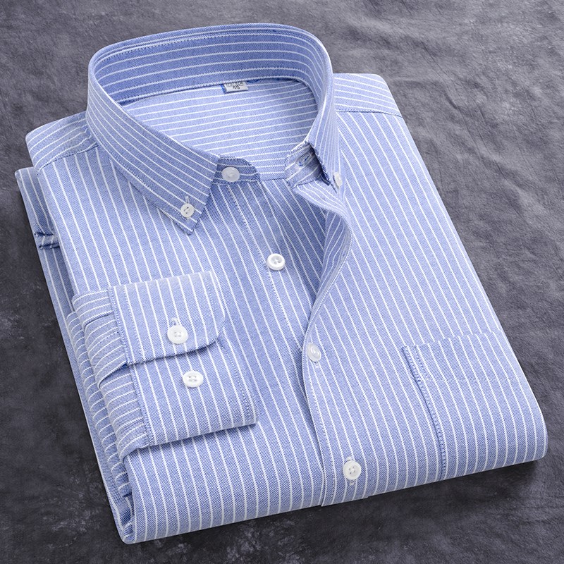 新款男士水洗牛津纺长袖衬衫中年休闲上班白色全棉工作服衬衣
