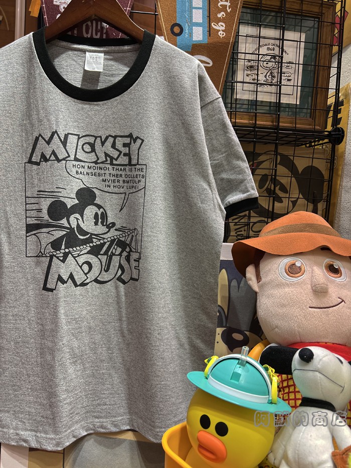 美式复古vintage经典卡通米奇撞色领纯棉重磅男女款短袖T恤情侣款