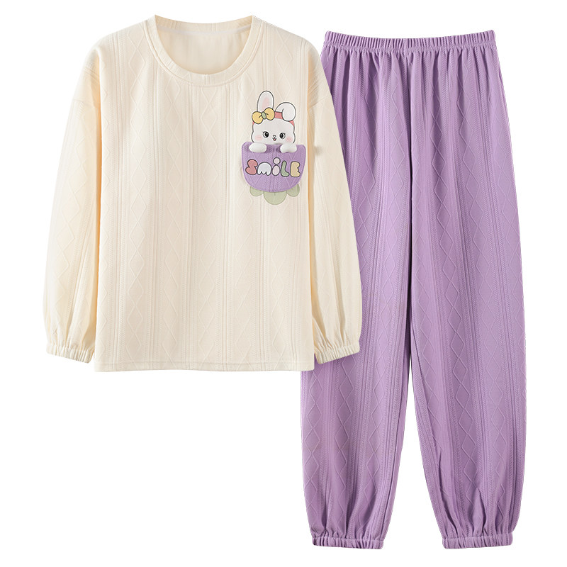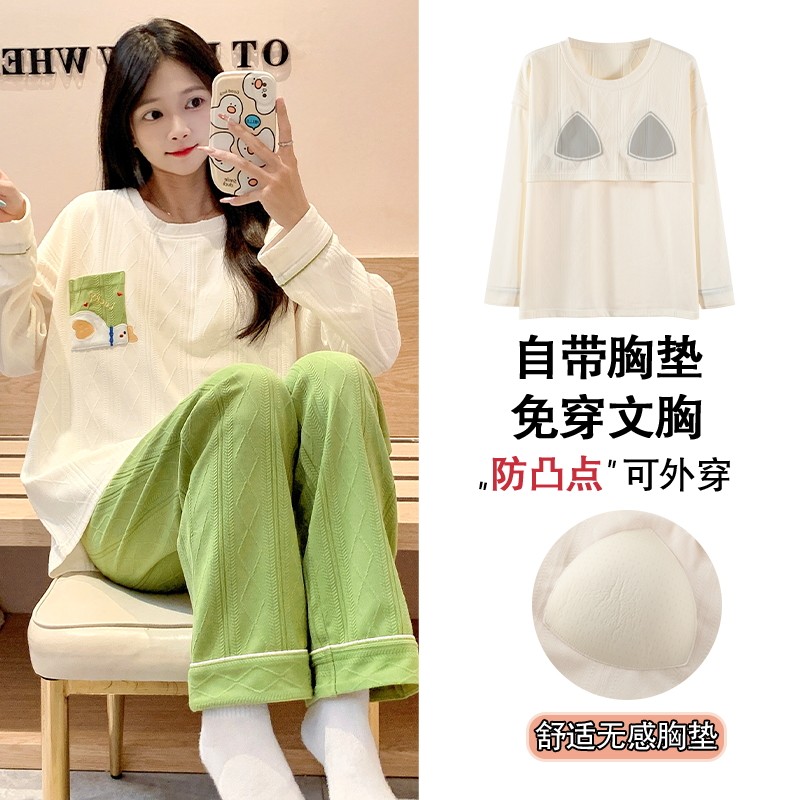 带胸垫一体纯棉睡衣少女孩春秋季长袖长裤可爱甜美韩版家居服套装