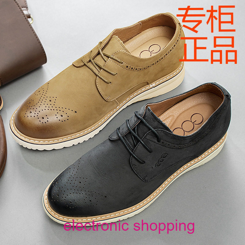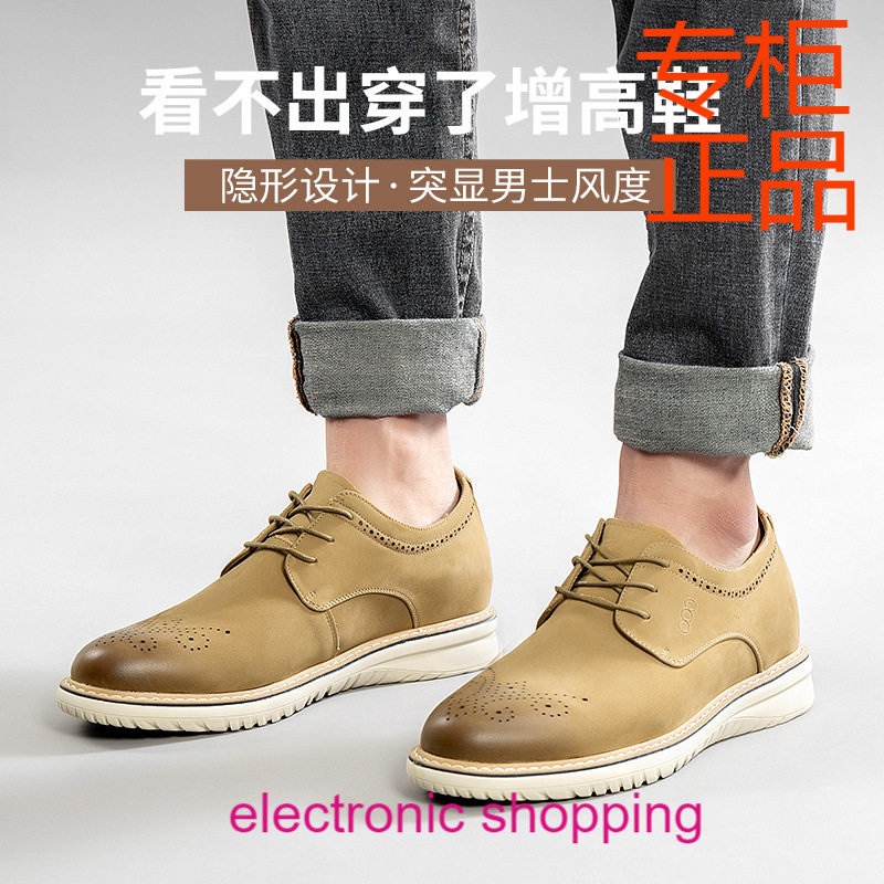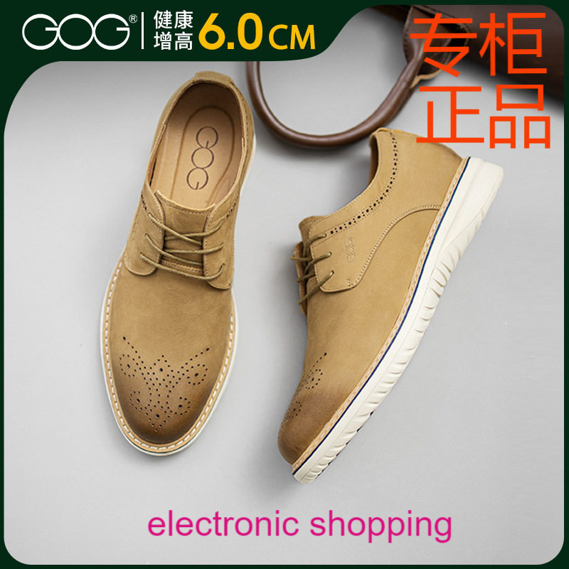 高哥休闲鞋新款雕花真皮男鞋英伦布洛克皮鞋轻质百搭隐形内增高鞋