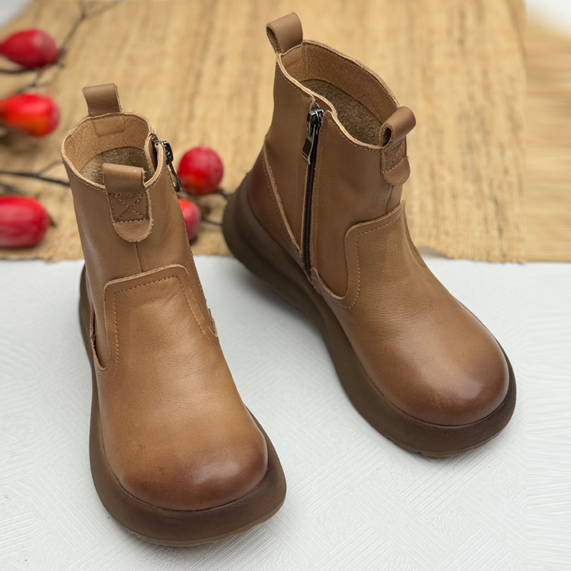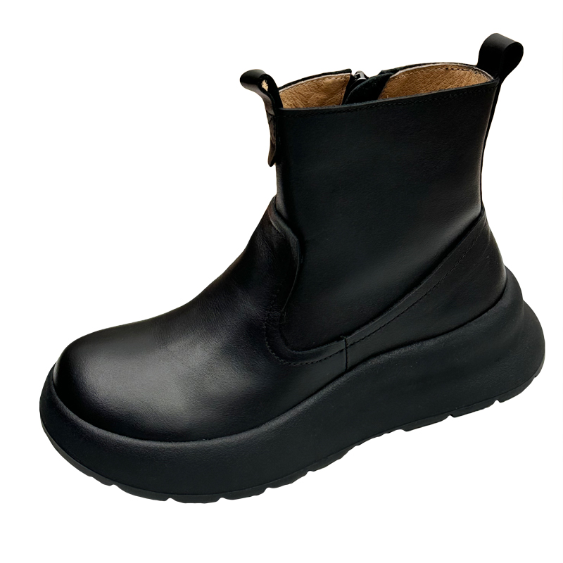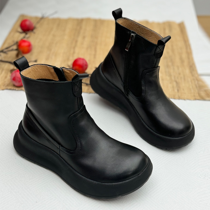 手工真皮厚底马丁靴女复古休闲增高女鞋中老年短筒靴子头层牛皮鞋