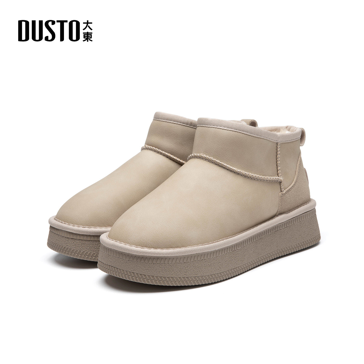 大东ddS厚底雪地靴女2025新款冬季短靴加绒增高女靴保暖面包棉鞋