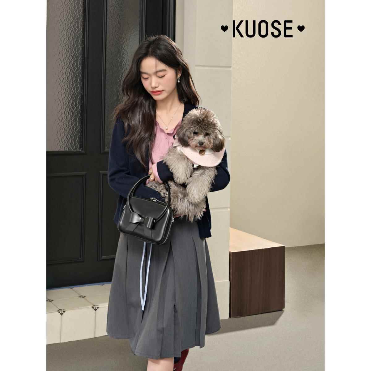 阔色假两件针织衫开衫外套毛衣女2025春季新款内搭打底衫上衣