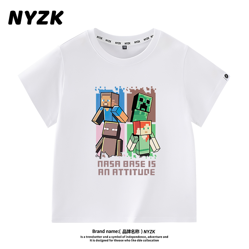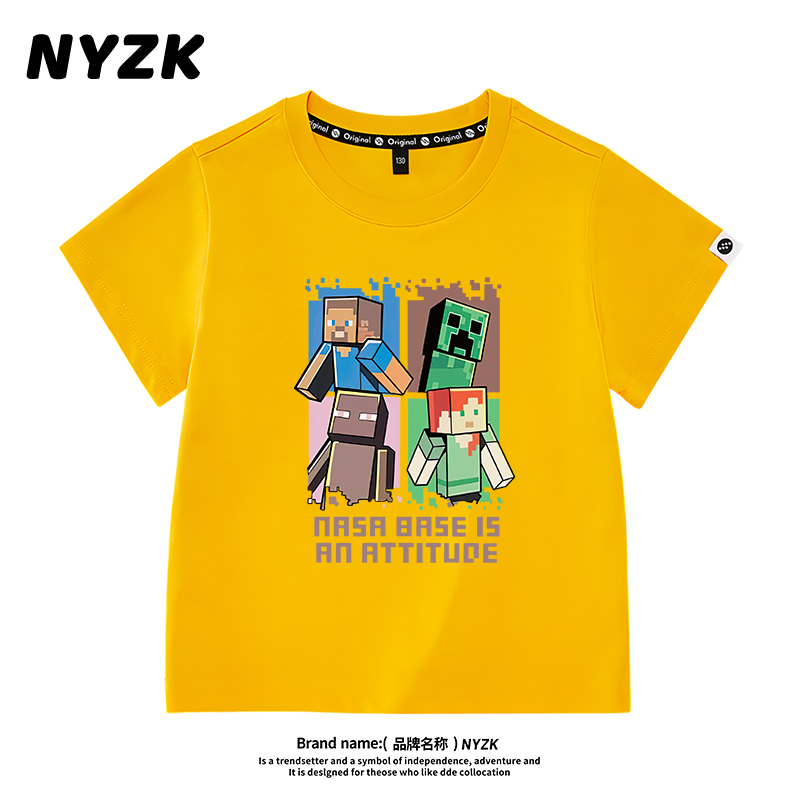 NYZK亲子装男童短袖T恤我的世界中大童男孩酷帅运动洋气纯棉夏装