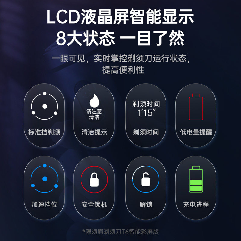 SMATE 须眉剃须刀男士电动刮胡刀AI智能变速圆单头小巧便携防水T6