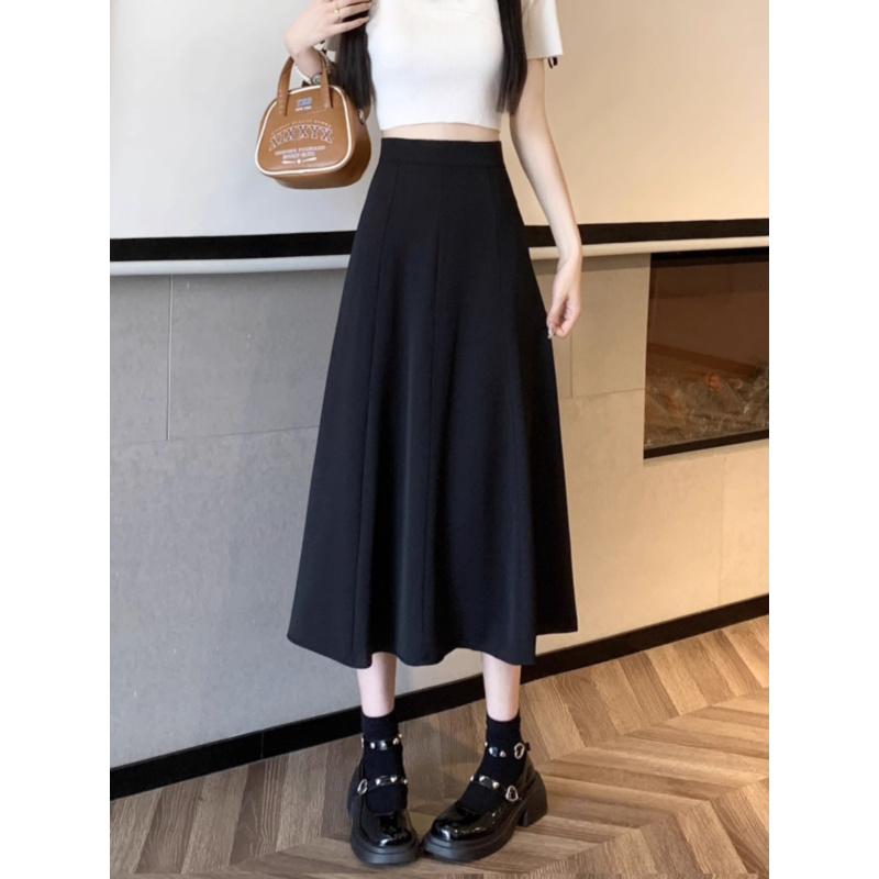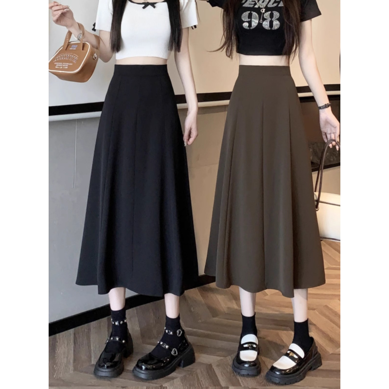 大摆高腰半身裙垂感显瘦百褶裙中长款伞裙春季小个子轻熟风a字女
