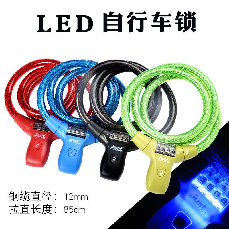 防剪钢缆死飞自行车锁山地车/折叠车/单车4位密码锁 LED夜光 包邮