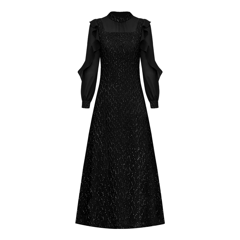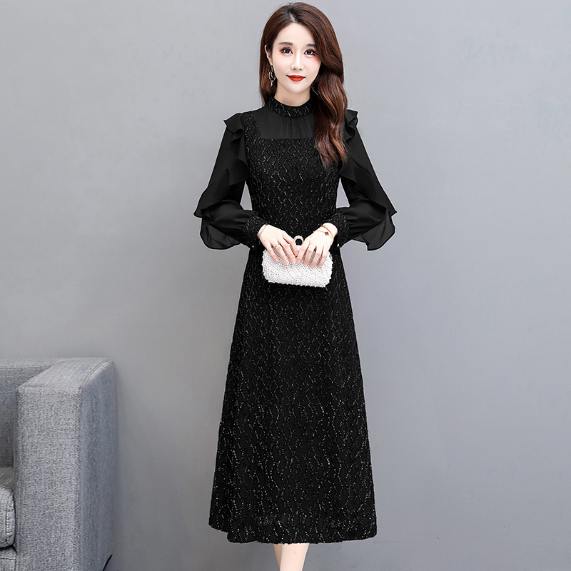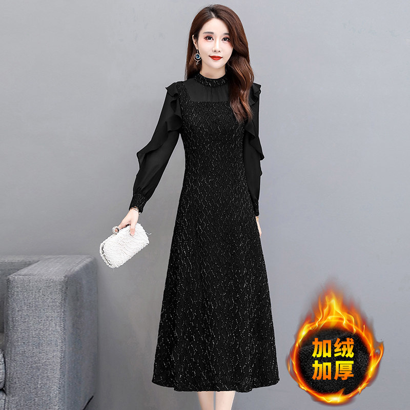 黑色长袖连衣裙2025冬装新款裙子高端小黑裙加绒打底长裙女秋冬季