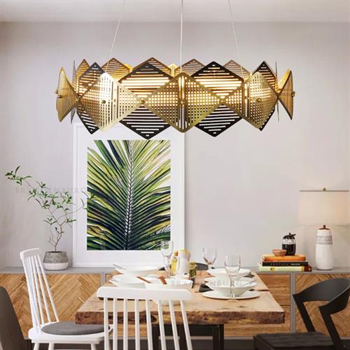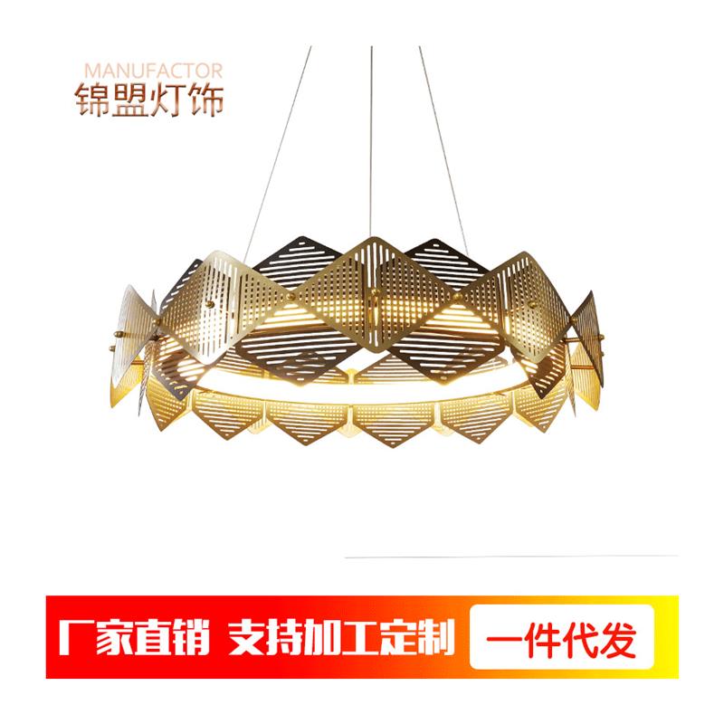后现代高档轻奢不锈钢镂空吊灯创意个性LED灯客厅卧室样板房灯具