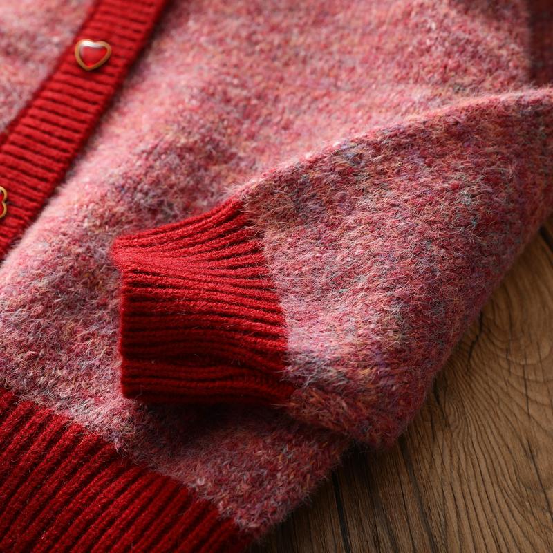 新年款小香风女童毛衣冬季新款针织爱心扣撞色洋气保暖加厚套头衫