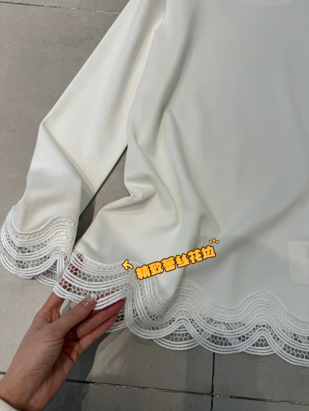 欧洲站2025秋冬新款时尚百搭显瘦圆领拼接蕾丝长袖T恤打底衫上衣
