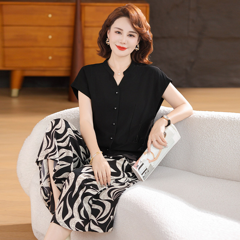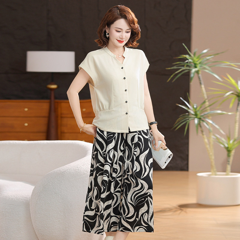 妈妈夏装套装2025新款洋气短袖上衣中老年女装休闲时尚套裙两件套