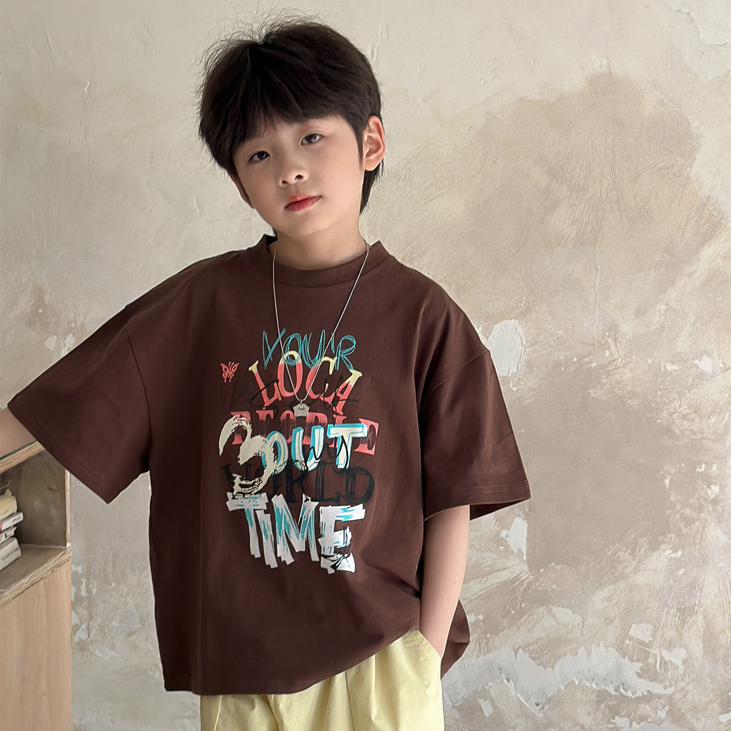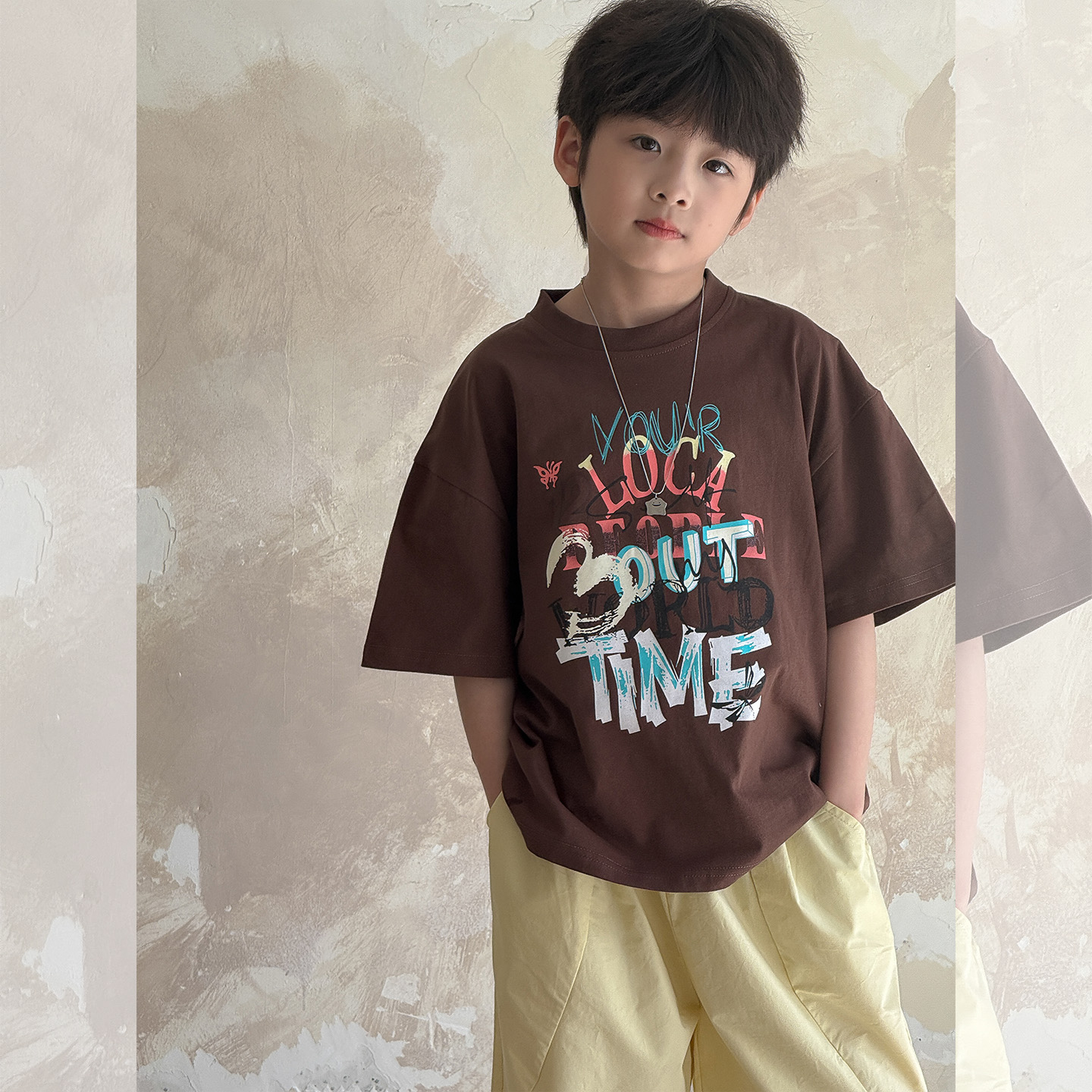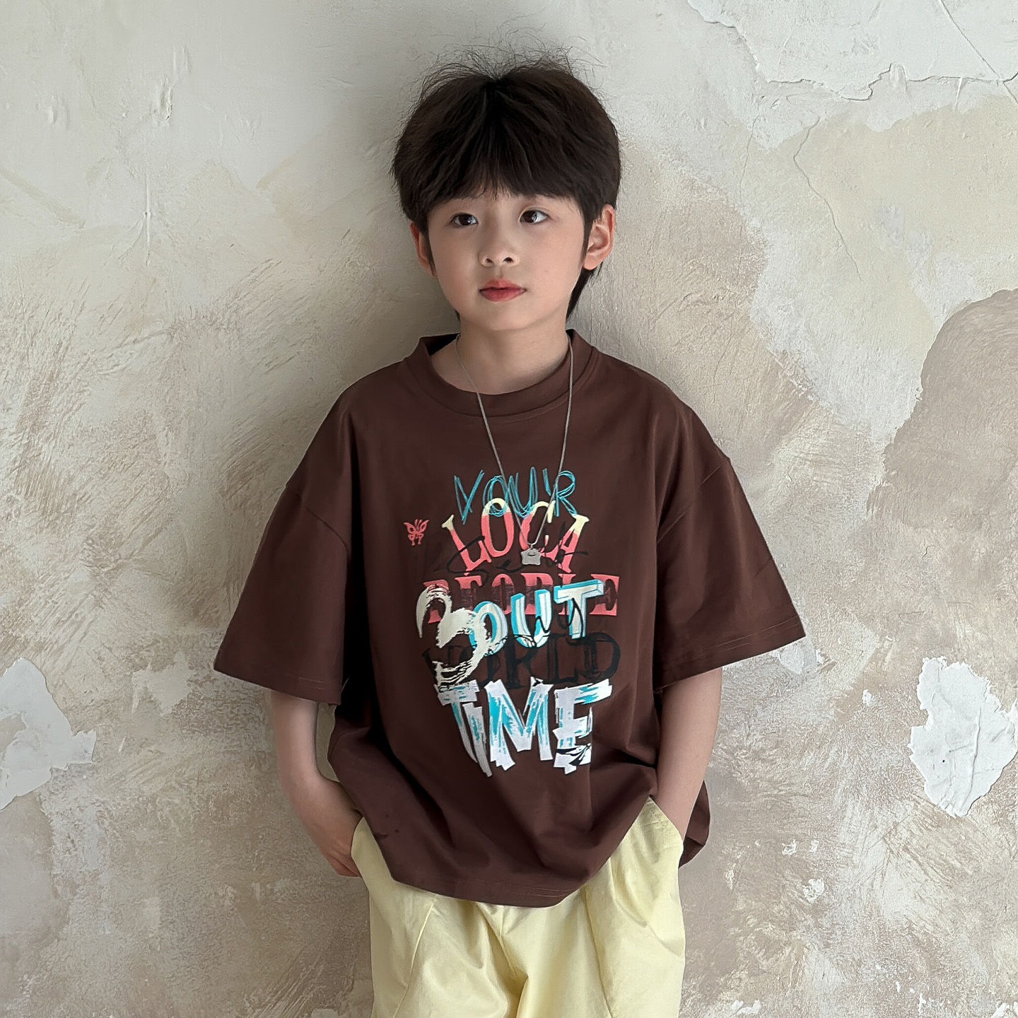 虾酱麻麻男童纯棉短袖t恤夏装2025新款上衣韩范字母儿童半袖体恤