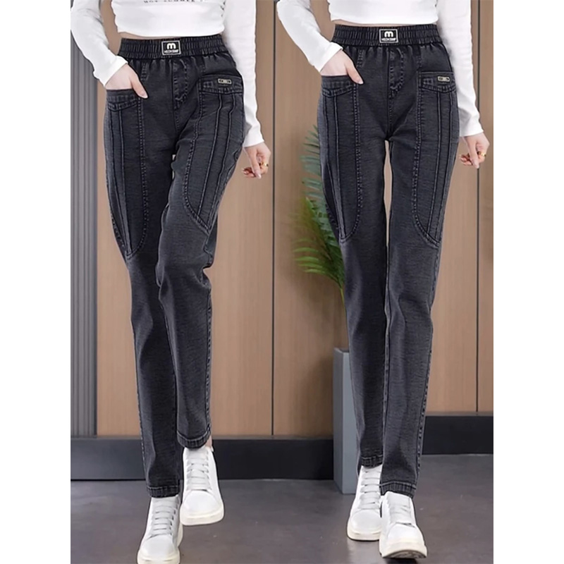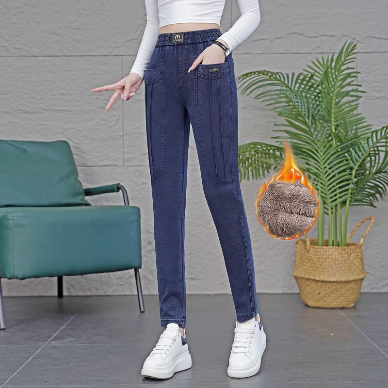 啄木鸟老爹哈伦牛仔裤女秋弹力松紧腰铅笔裤高腰提臀烟管小脚裤