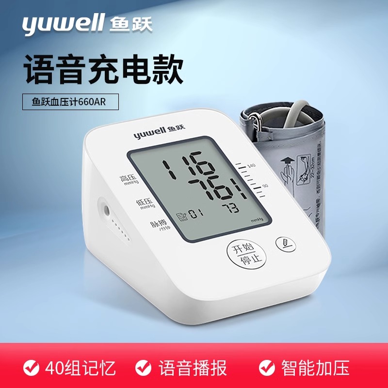 鱼跃电子血压计660AR上臂式血压测量仪语音充电款家用血压测量计