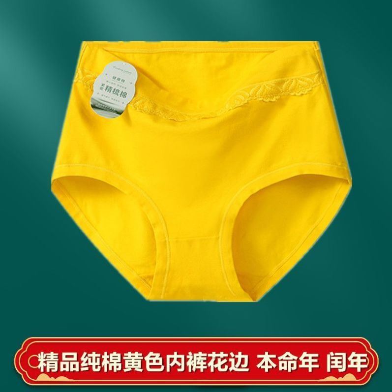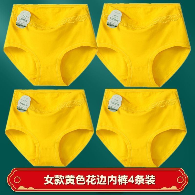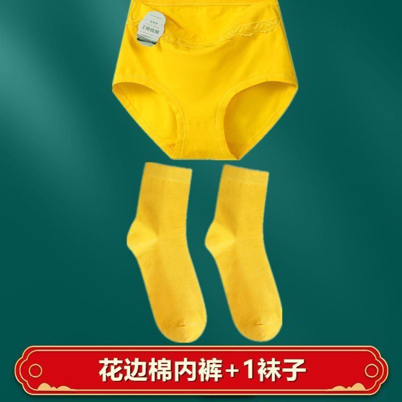 女士黄色内裤本命年纯棉黄裤头妈妈款中老年黄金色内裤女袜子套装