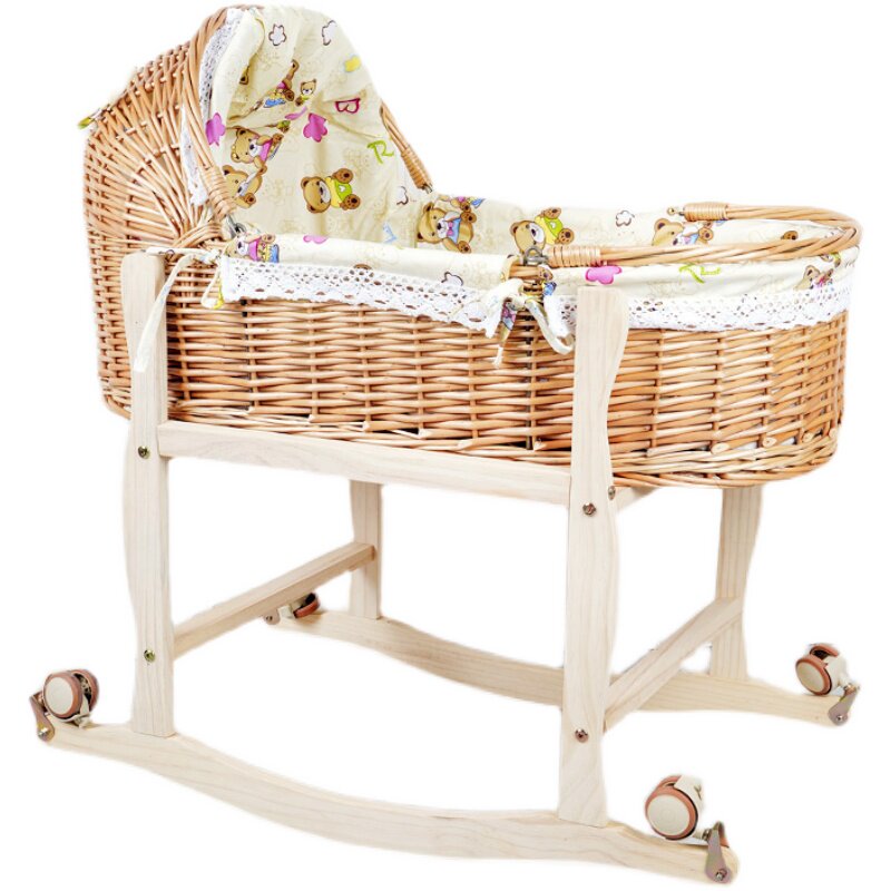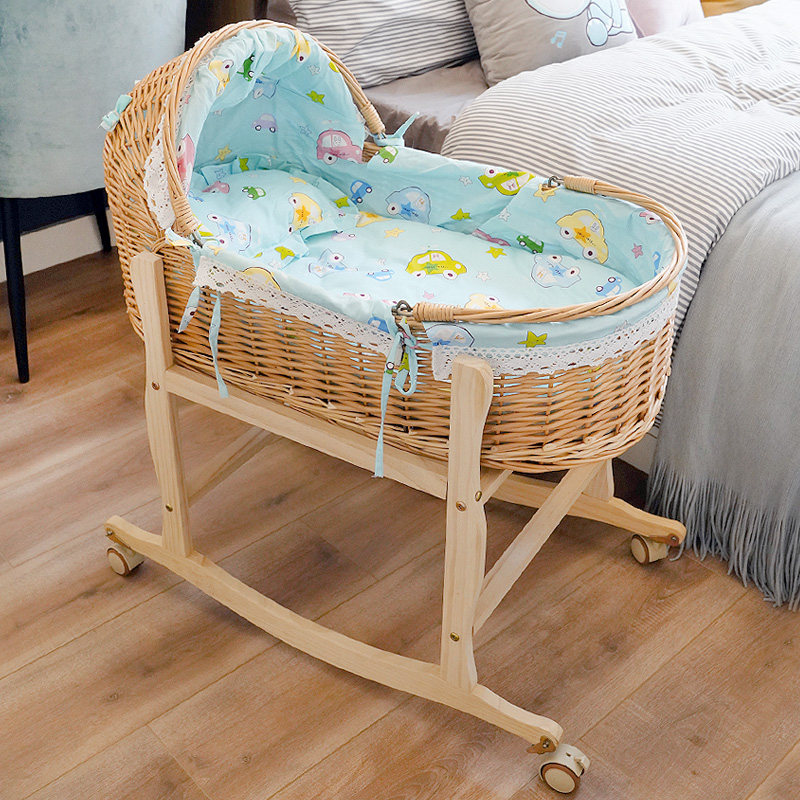 藤编婴儿摇篮床新生儿外出便携手提篮车载安抚睡篮宝宝床摇篮实木