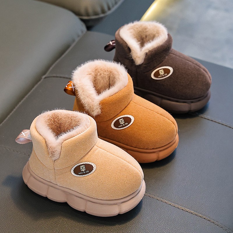 儿童雪地靴踩屎感女童短靴冬季女孩防滑外穿保暖棉靴子宝宝大棉鞋