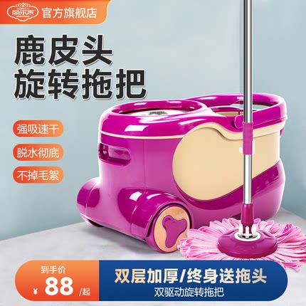 丽尔家免手洗鹿皮拖把家用地拖自甩水拖把桶旋转墩拖布懒人拖把