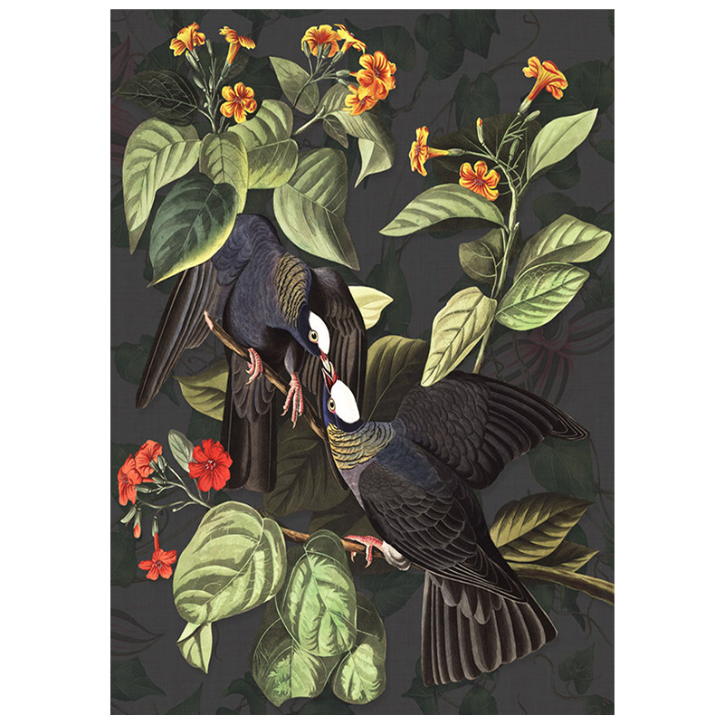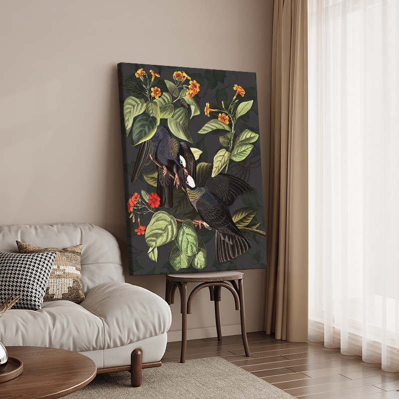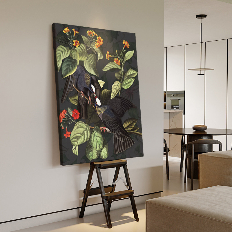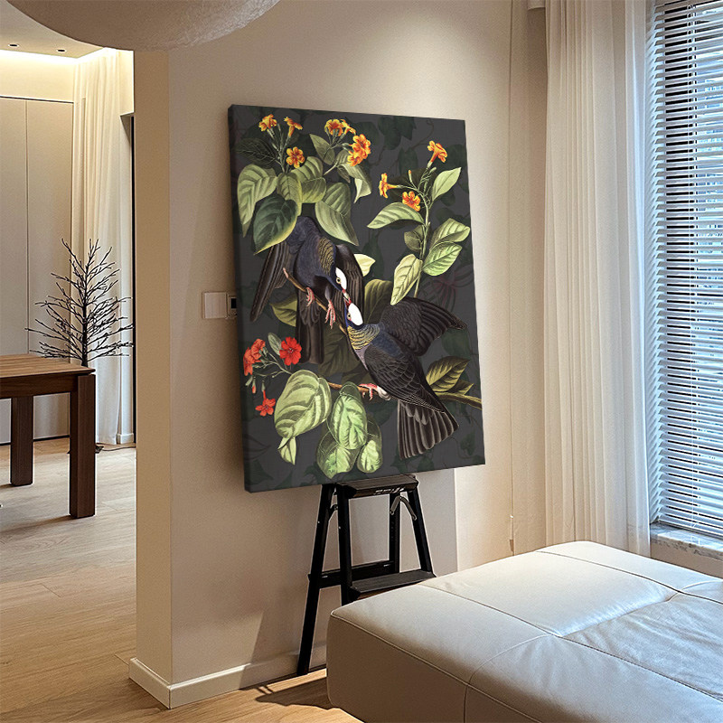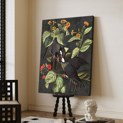 纯手绘油画写实鸽子玄关挂画法式复古绿色花卉动物客厅小众装饰画