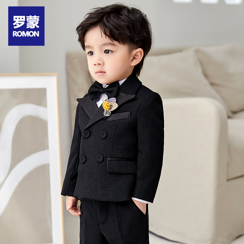 罗蒙儿童西装套装花童三件套帅气英伦小西服男童周岁生日宝宝礼服