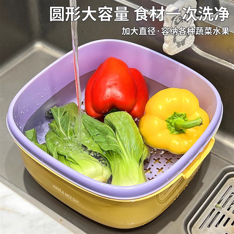 多巴胺洗菜盆沥水m篮家用厨房双层洗菜篮子滤水淘菜盆客厅水果盘