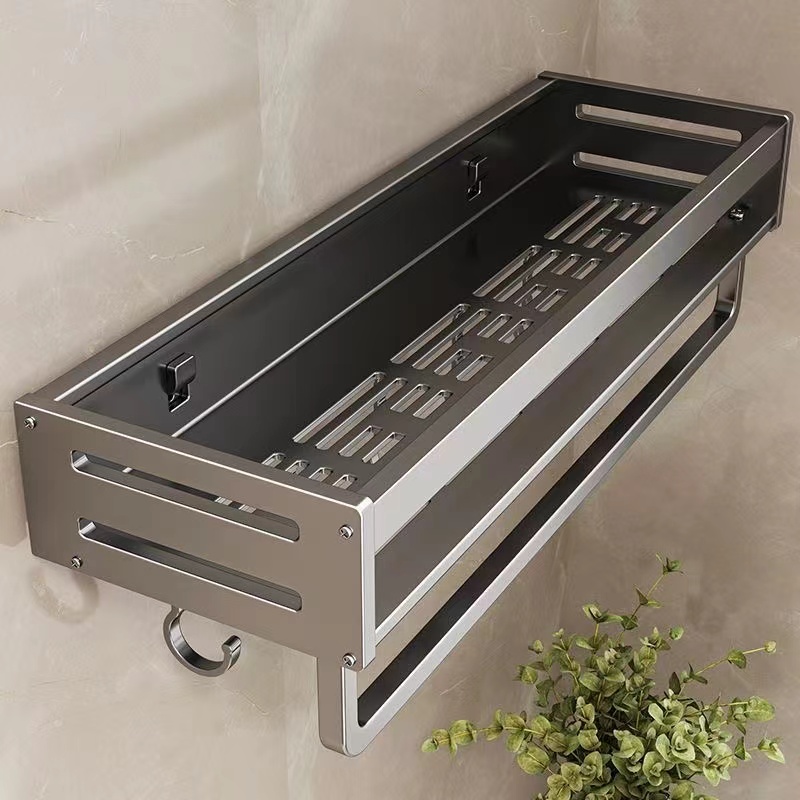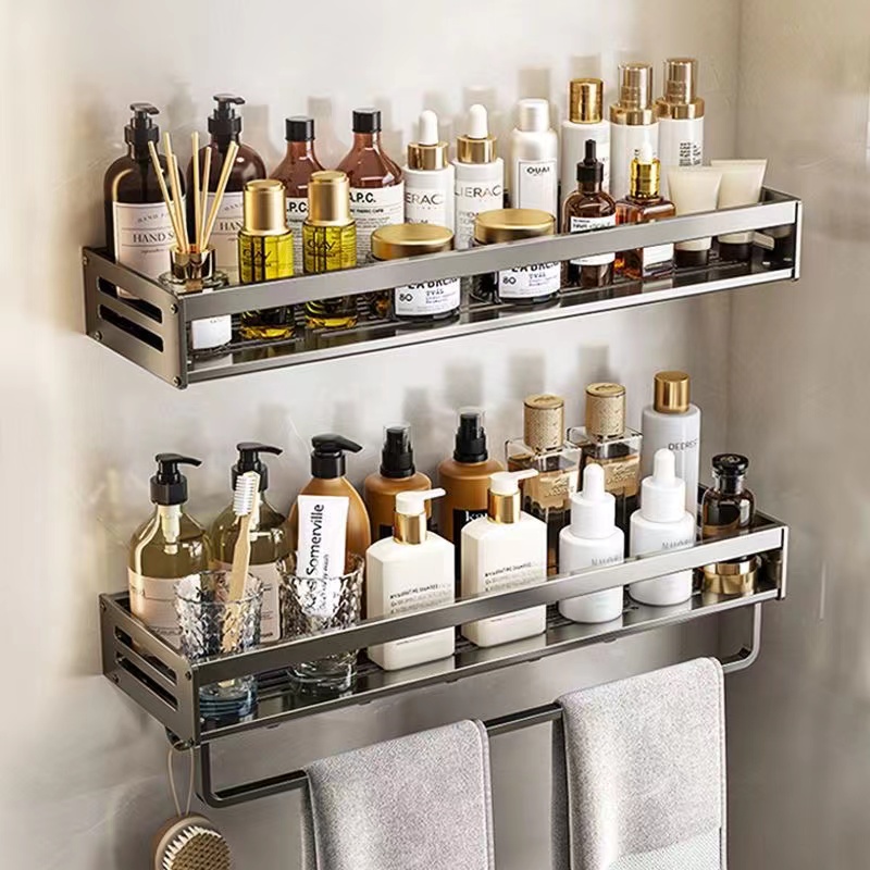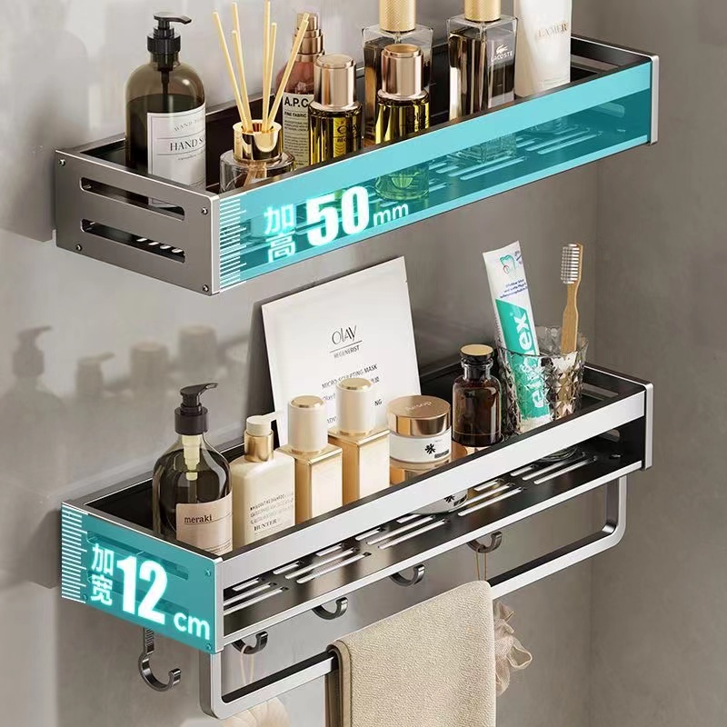 枪灰卫生间置物架浴室毛巾洗衣机免打孔洗手间厕所壁挂式收纳架子