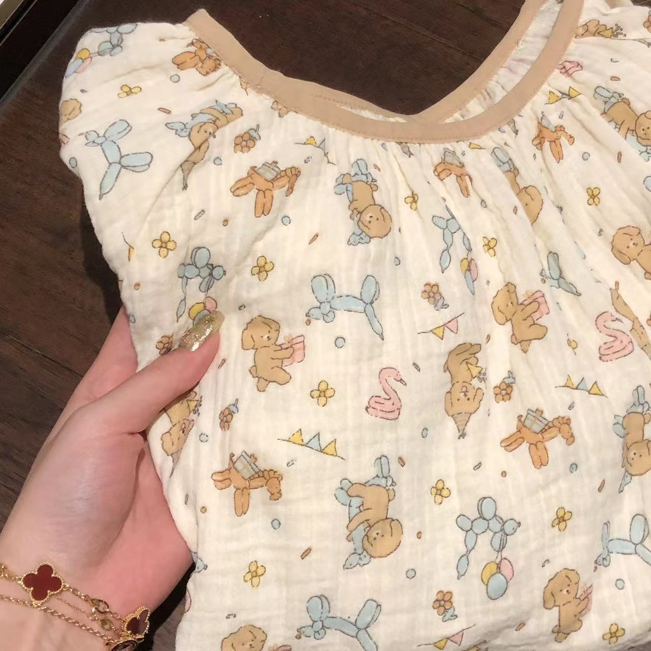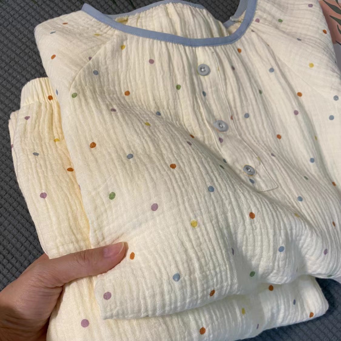 100%纯棉双层纱布月子服春秋长袖睡衣女夏季棉纱全棉麻家居服