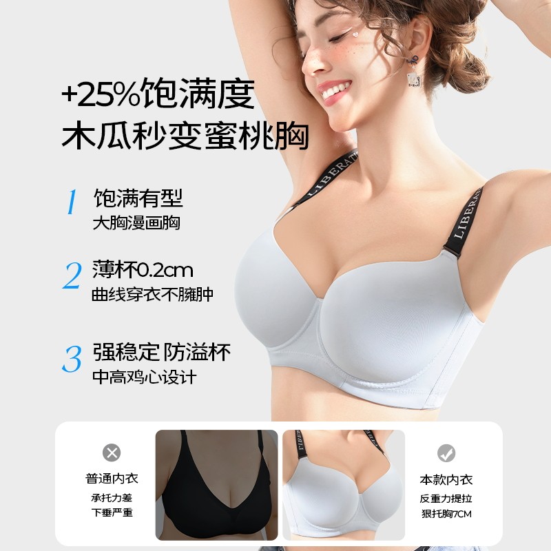糖粒无痕内衣女大码胖mm大胸聚拢上托防下垂薄款显小全罩杯文胸罩