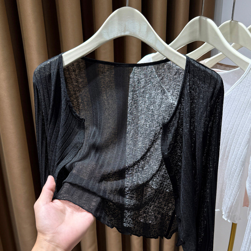 超薄白色冰丝防晒开衫女薄款夏季配裙子高级感小外搭披肩针织罩衫