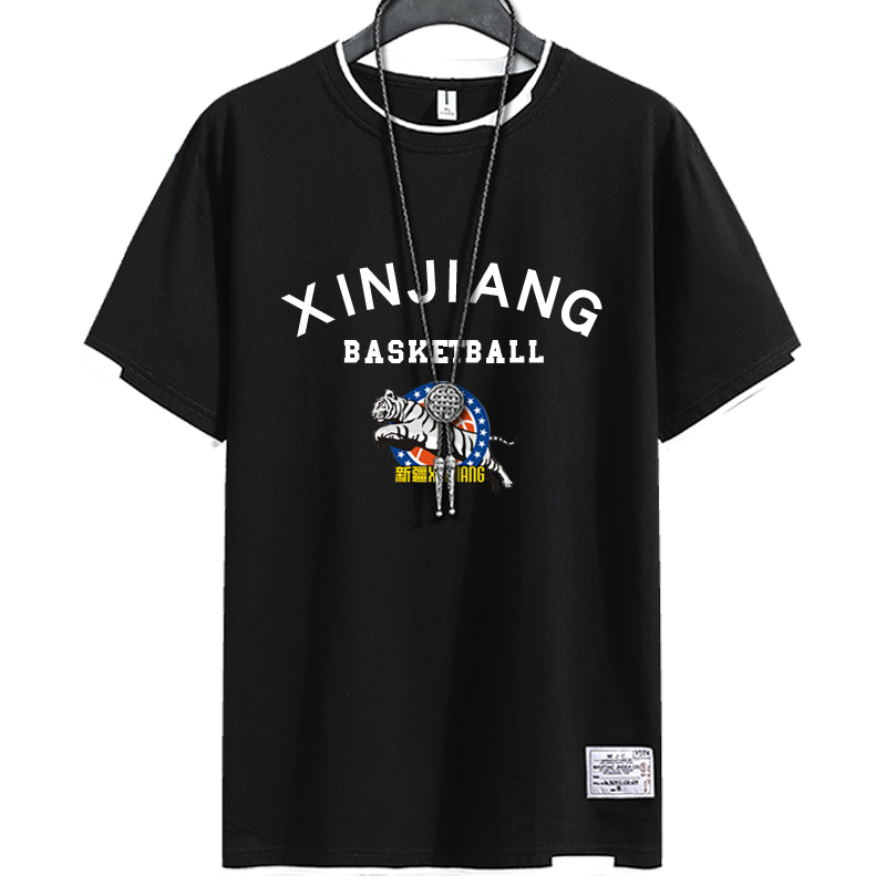 新疆飞虎CBA联赛球迷服男篮球周边假两件短袖t恤衫半袖休闲球衣服