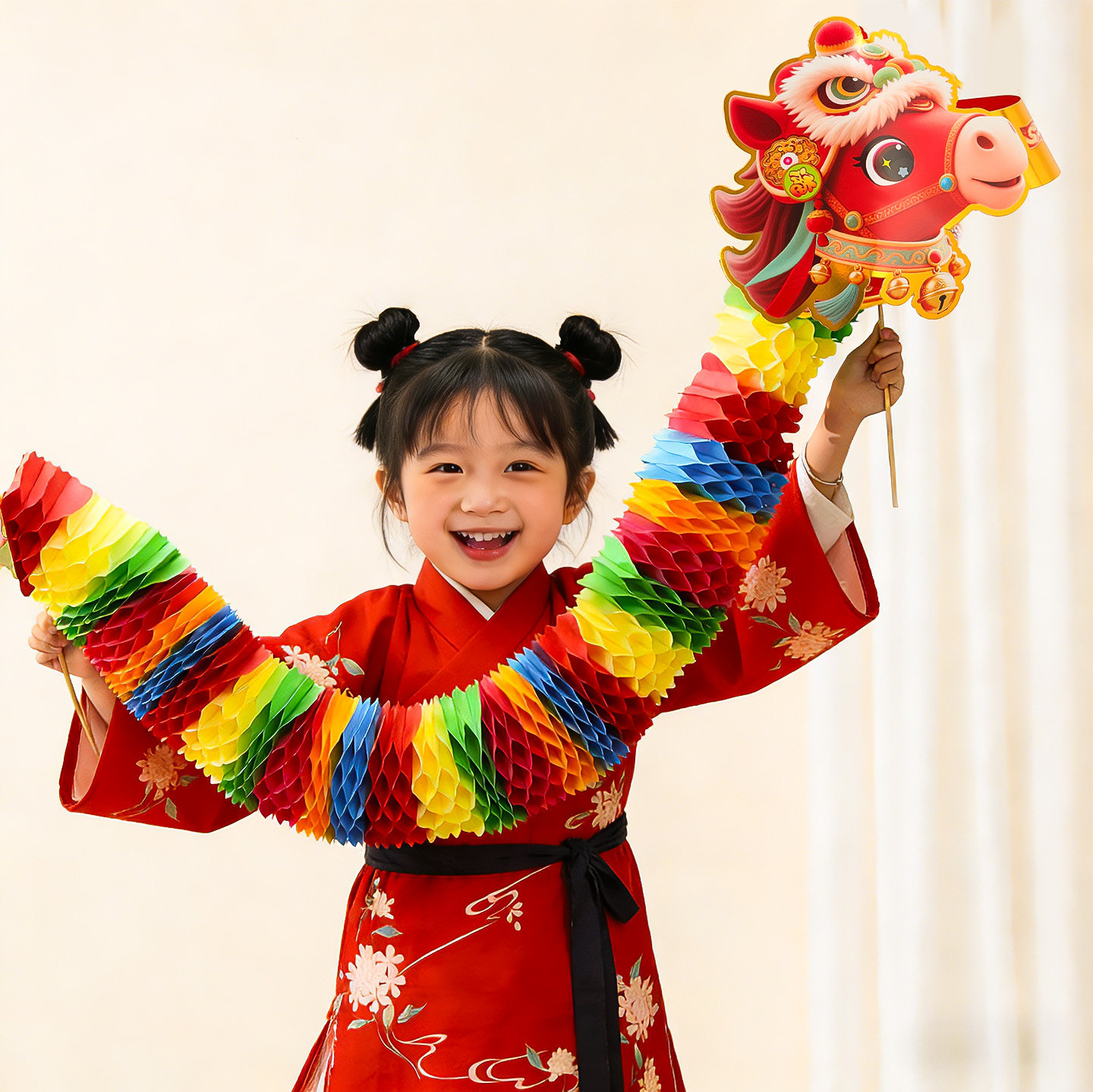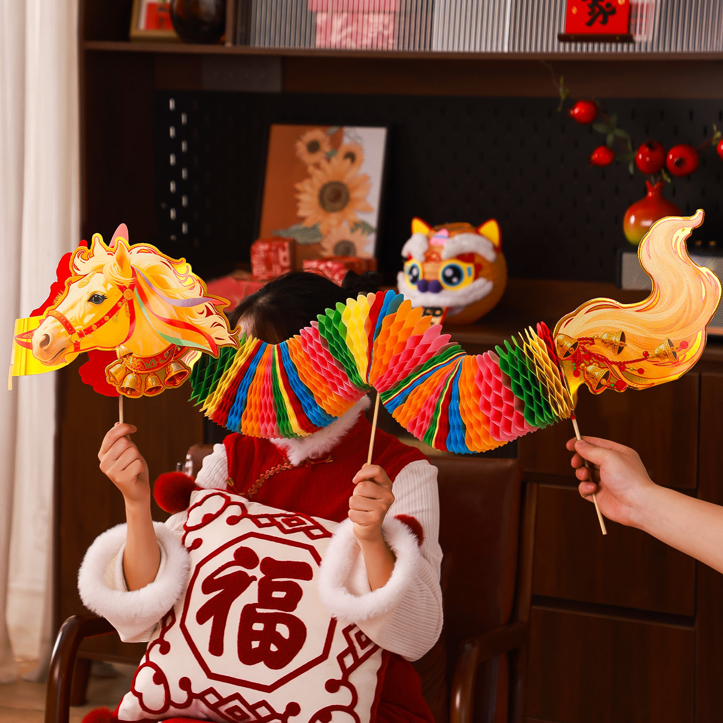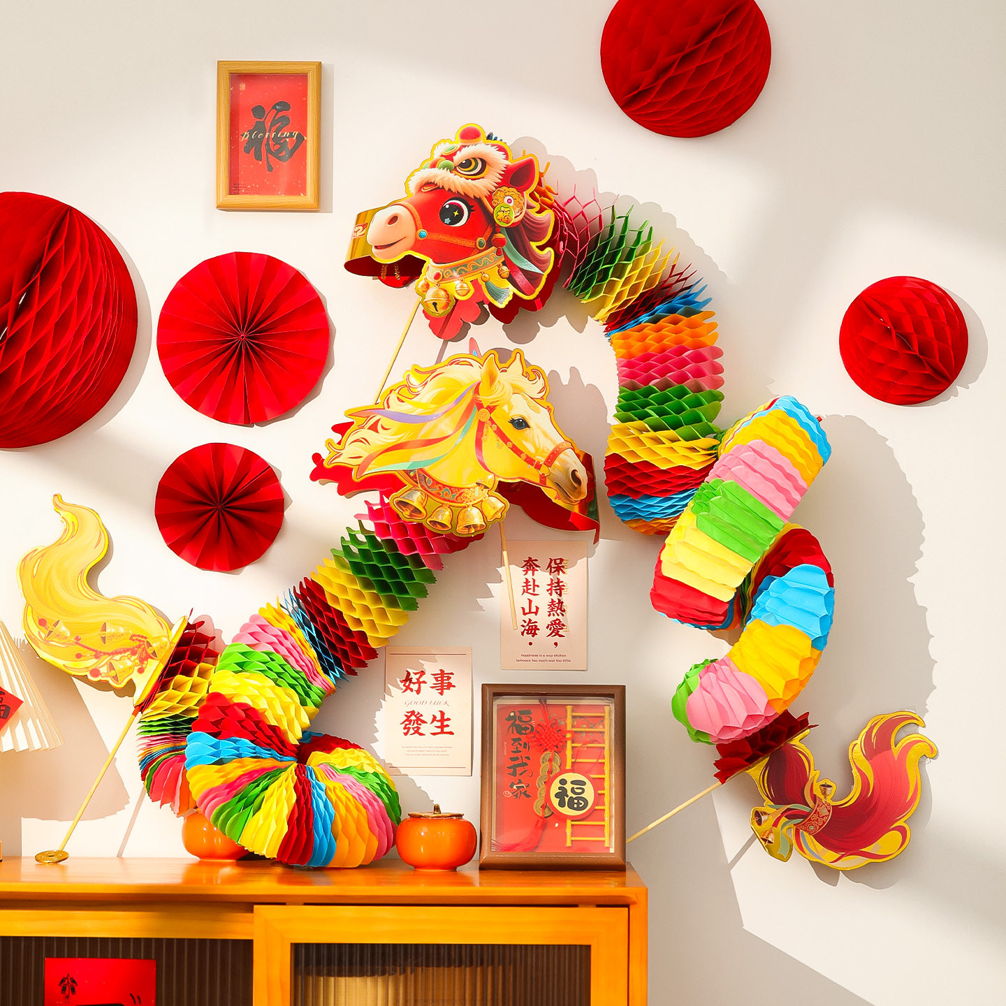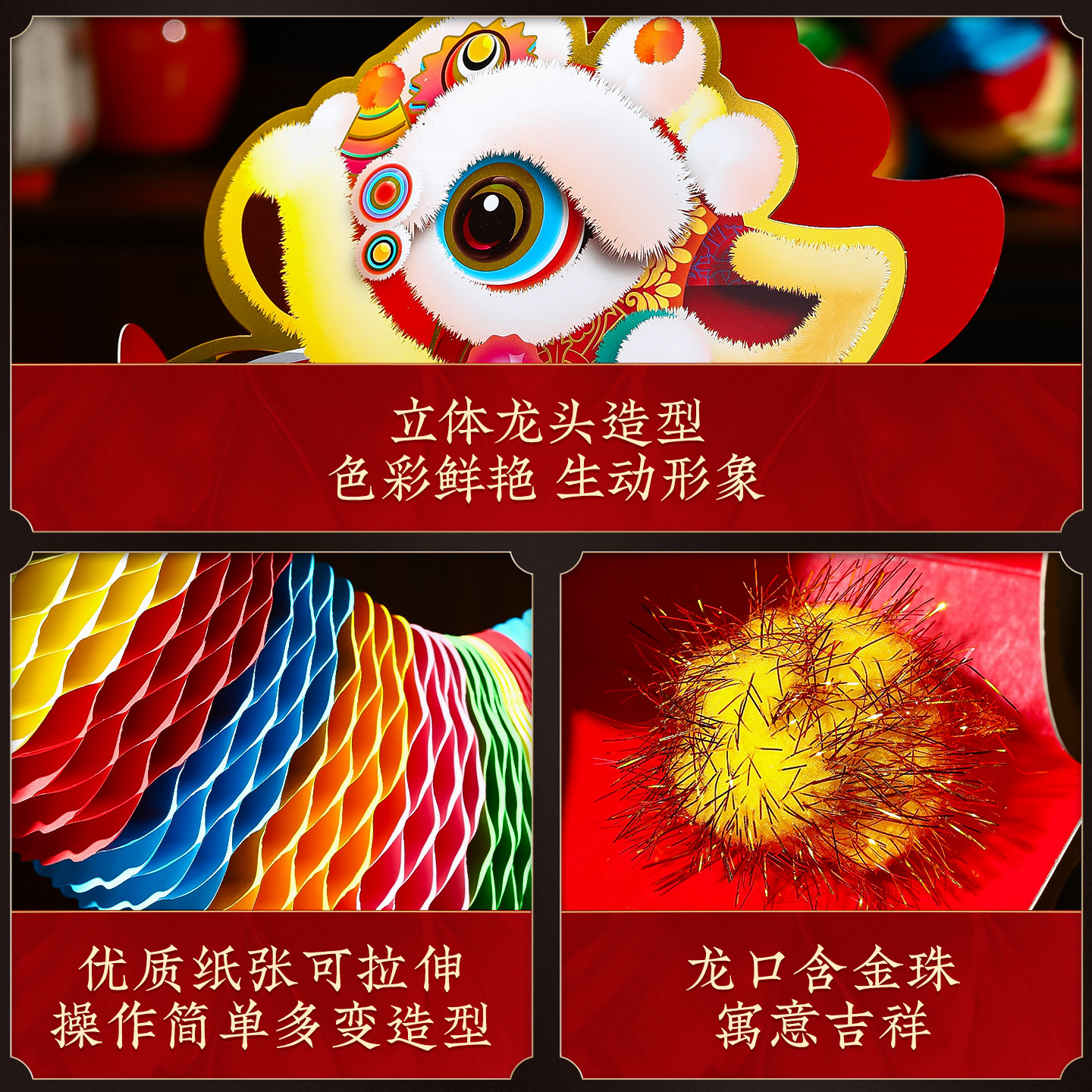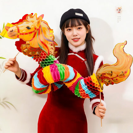 新年舞龙装饰品2026马年纸灯笼儿童拍照道具元宵过年商场氛围布置