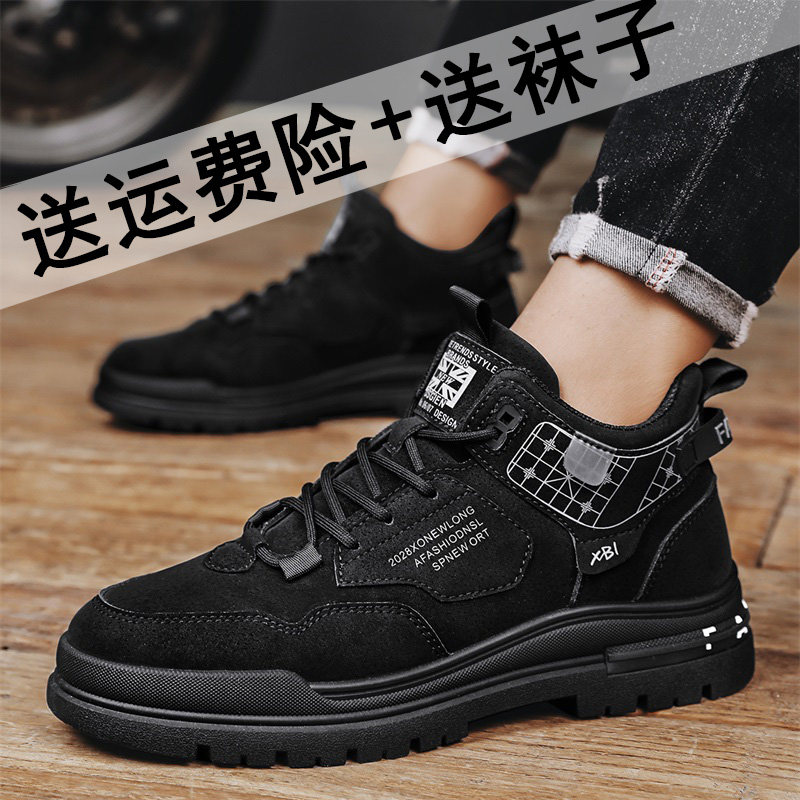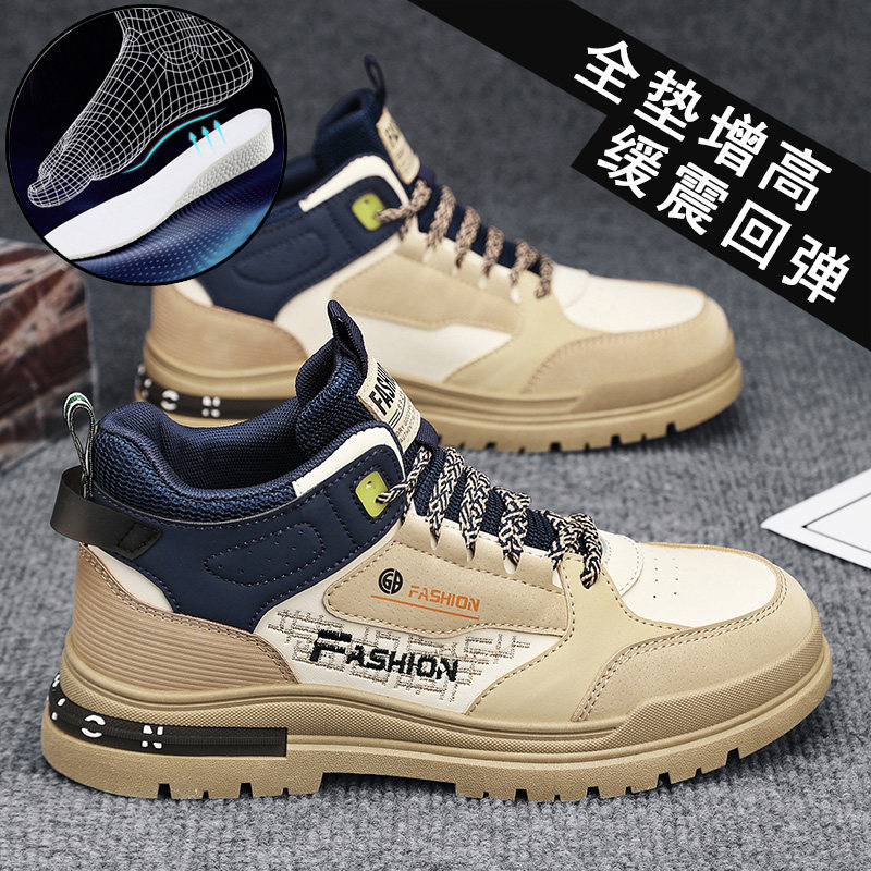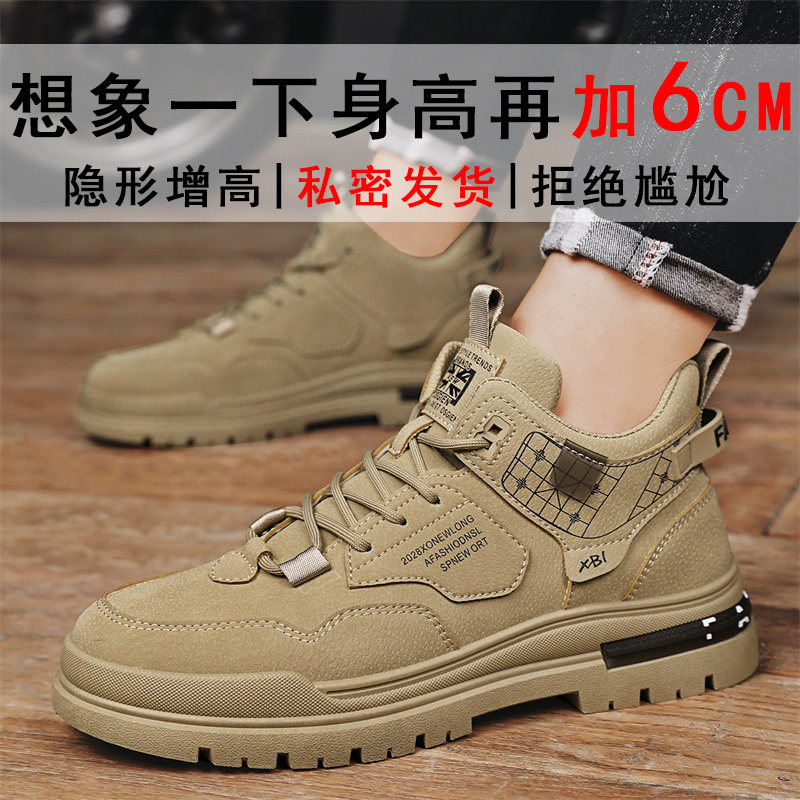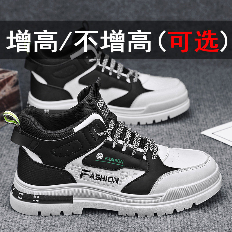 男鞋秋冬内增高马丁潮鞋青少年学生高帮休闲小众爆款加绒保暖棉鞋