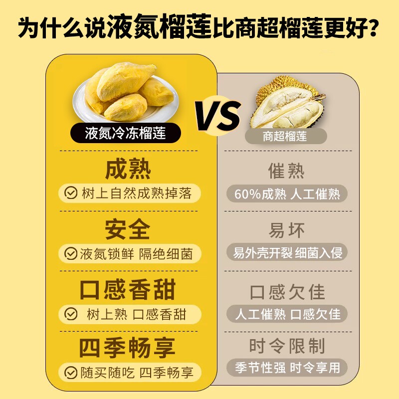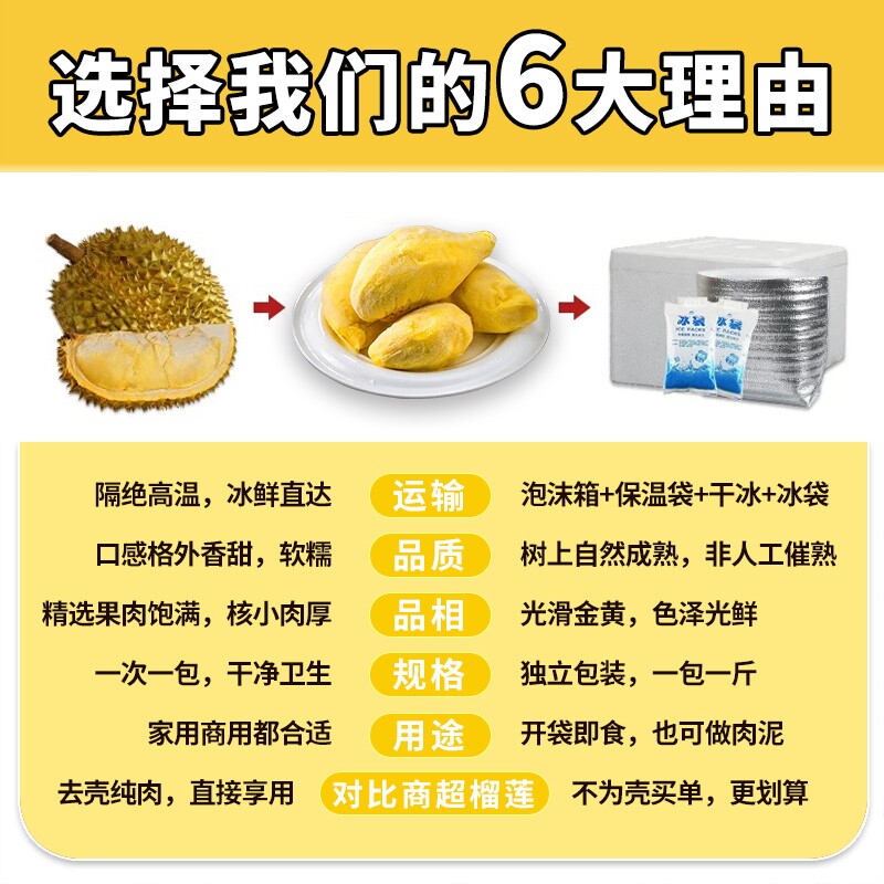 正宗A级泰国金枕树熟带奶皮榴莲液氮锁鲜软糯香甜榴莲肉800g/袋